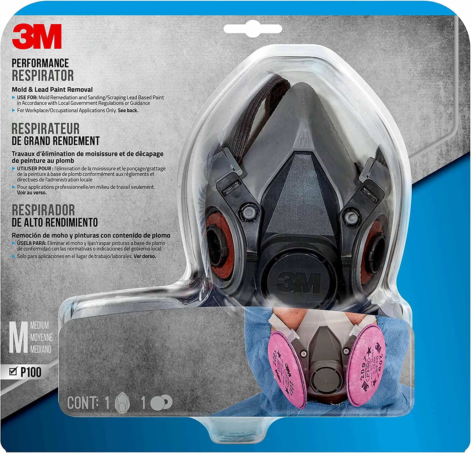 3M Mold and Lead Paint Removal Respirator, Lightweight Construction For Comfort, Convenient Reusable Design, Medium, 6297PA1-A