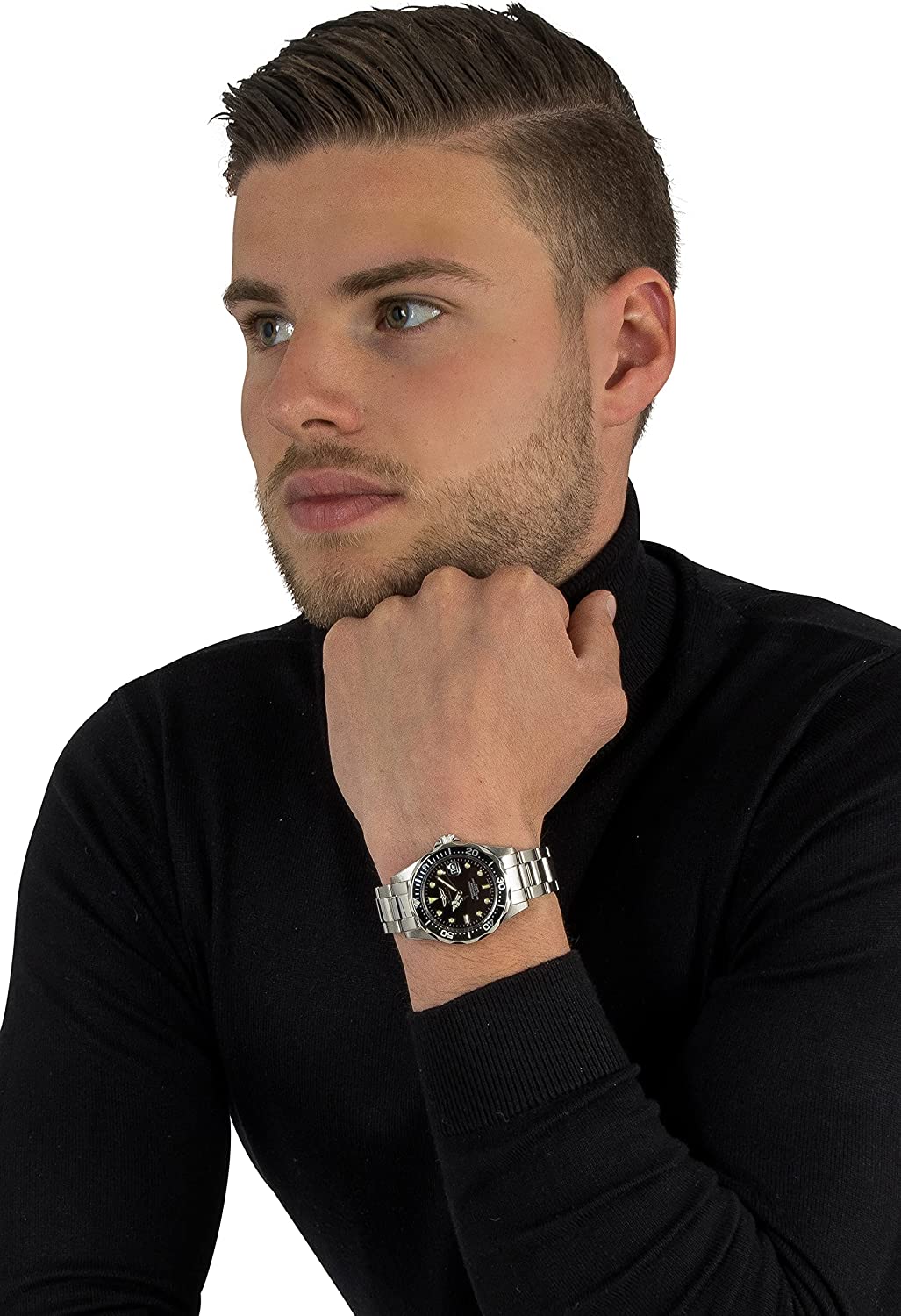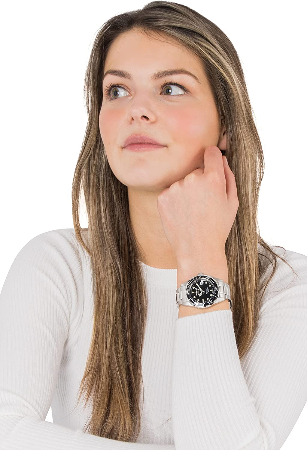 • Mineral crystal; Push/pull crown; Unidirectional stainless steel bezel with black top bezel ring; 200 meter water resistant: Suitable for professional marine activity and surface water sports. Suitable for diving.