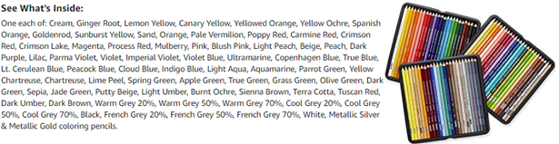 What's in the BoxSet of 72 assorted Prismacolor Premier Colored Woodcase Pencils, and tin case.