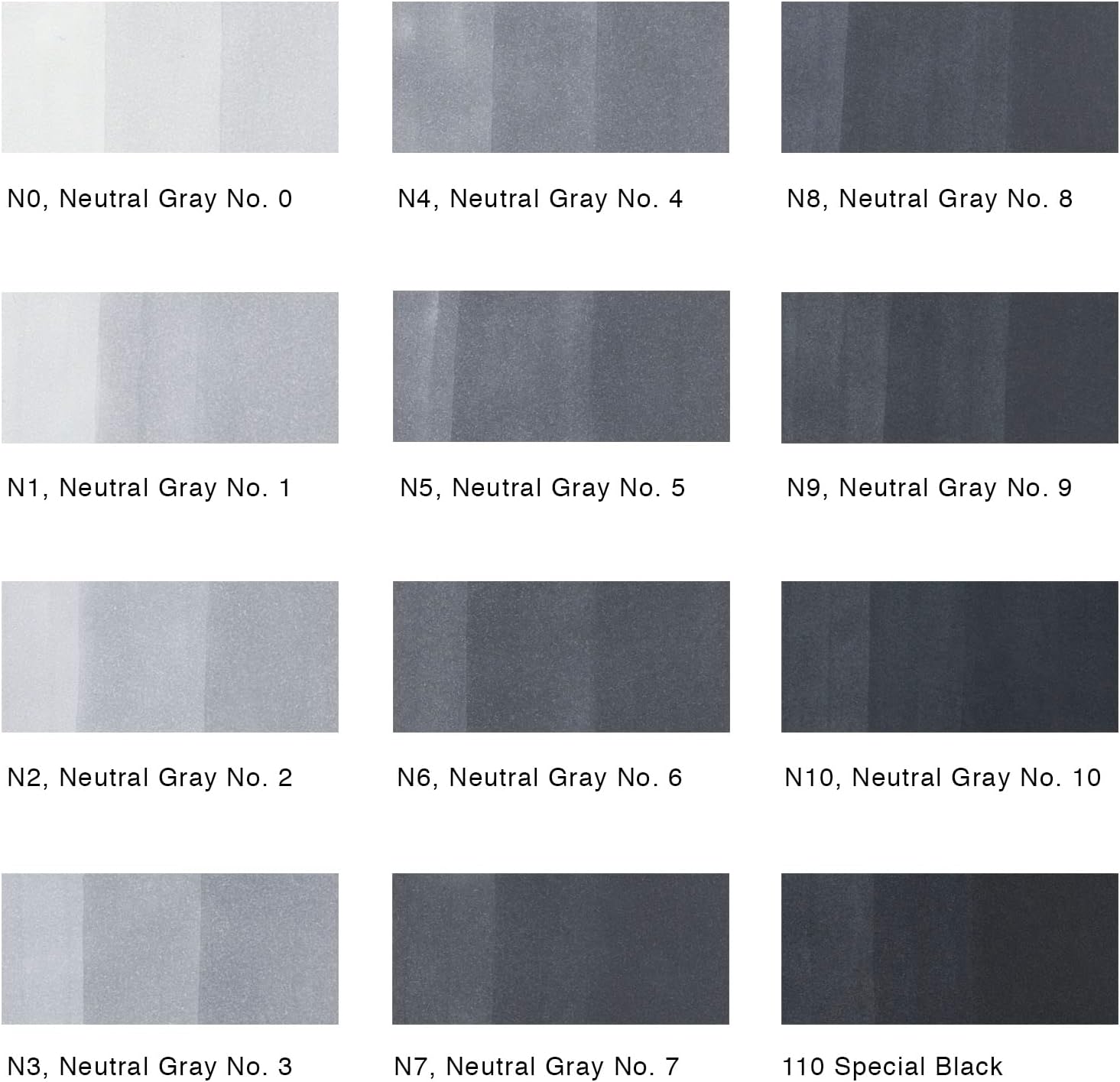 • Premium alcohol-based markers made in Japan. Colors included in this set: Neutral Gray 0 -10 (N0, N1, N2, N3, N4, N5, N6, N7, N8, N9, and N10) and 110.
