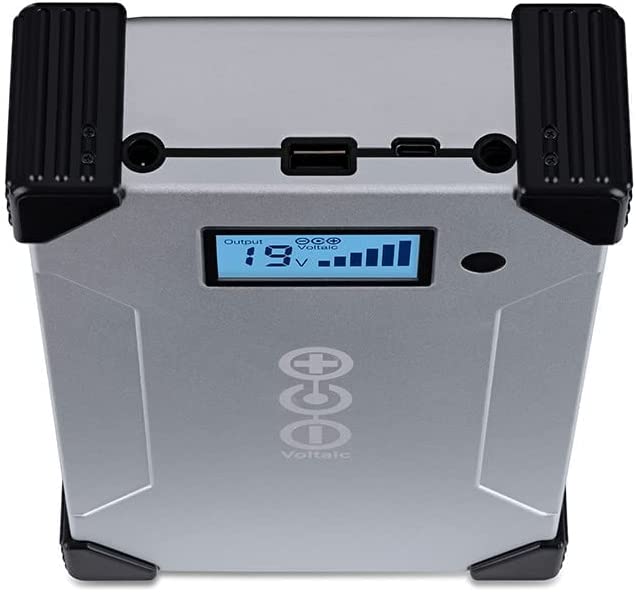 Charge your laptop anywhere with the lightweight and powerful V88 External Battery Pack by Voltaic. This 24,000mAh / 88 wH power bank will charge most laptops tablets, smartphones, and digital cameras. Optimized to charge from solar. Features three outputs including: USB-C PD, USB QuickCharge 3.0, and a hi-voltage laptop output at 12V, 16V, 19V, or 24V.