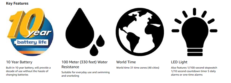 100M Water Resistance and 10-Year Battery life makes this watch the perfect choice for those looking for top cost performance in a timepiece.