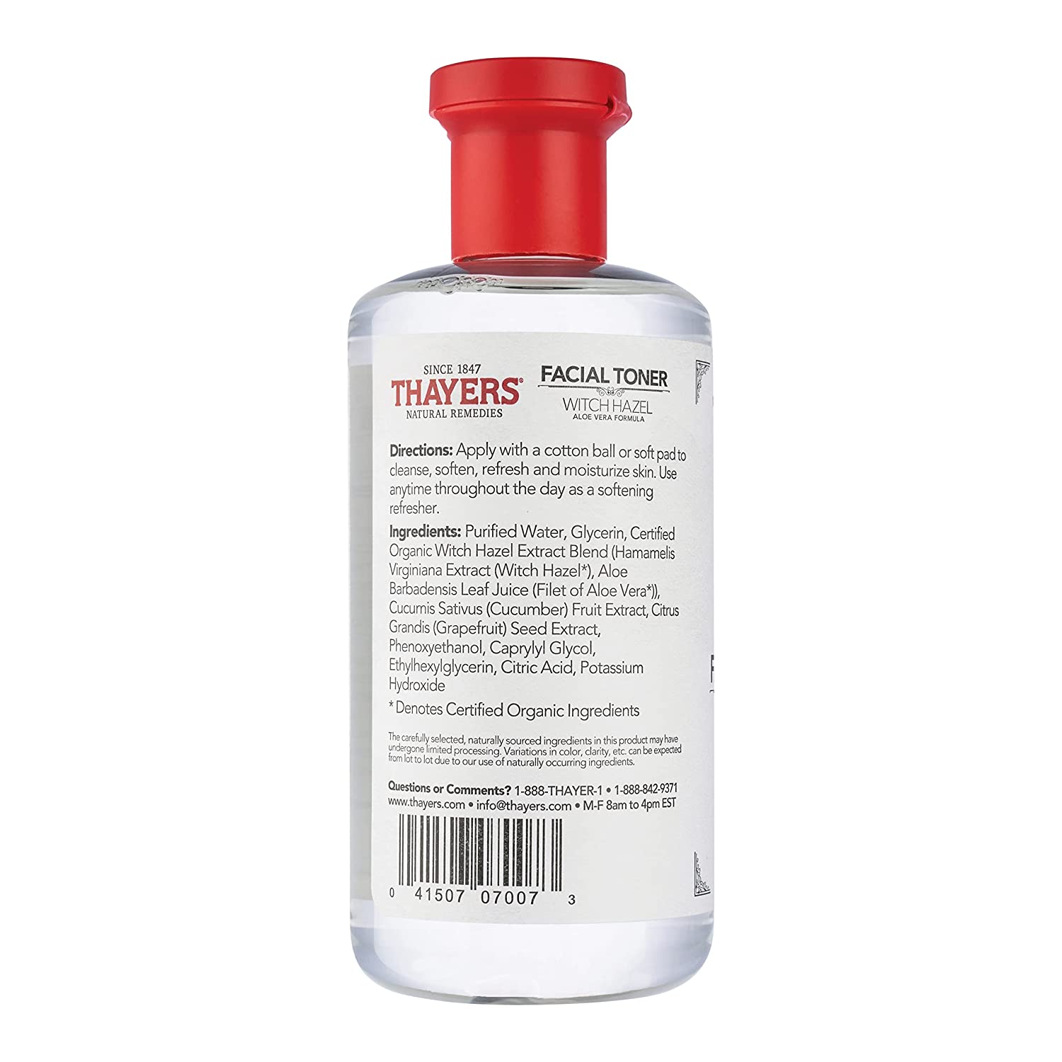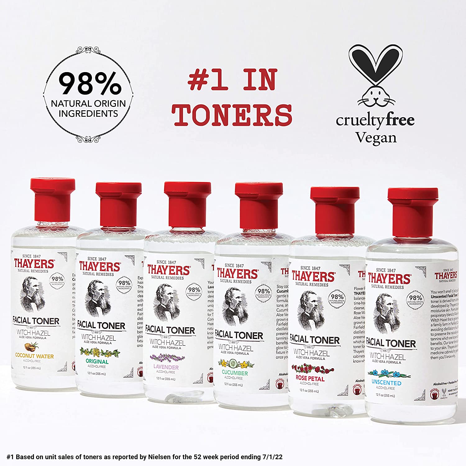 • 98 Percent Natural Origin Ingredients: Made with certified organic Witch Hazel grown and harvested exclusively for Thayers on a family farm in Connecticut, and certified organic Aloe Vera