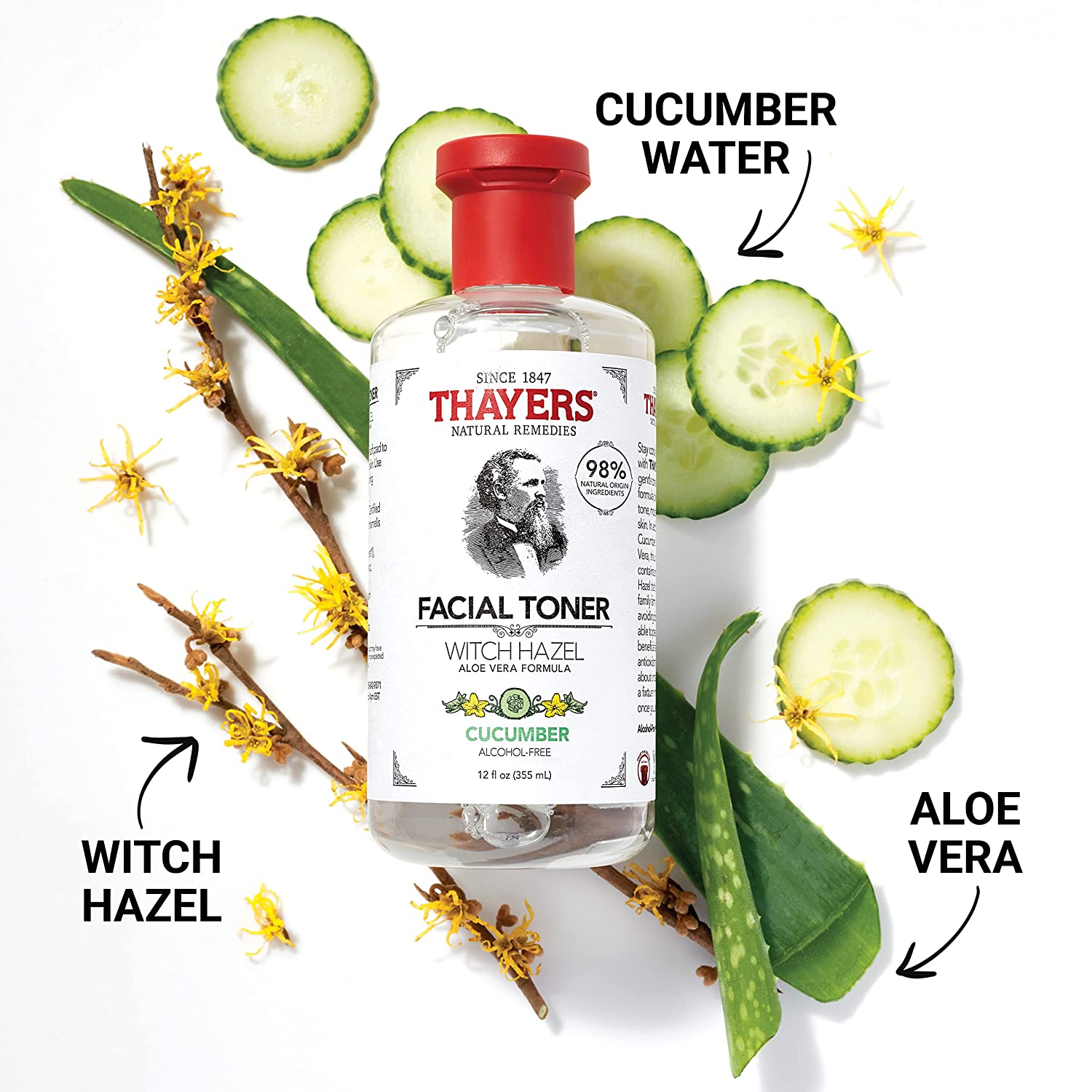 THAYERS Alcohol-Free Cucumber Witch Hazel Facial Toner with Aloe Vera Formula, 12 oz