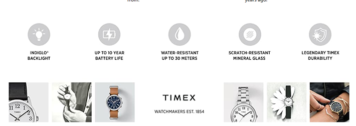 • Bright white dial with gold-tone hands and black Arabic numerals offers easy reading in any light.