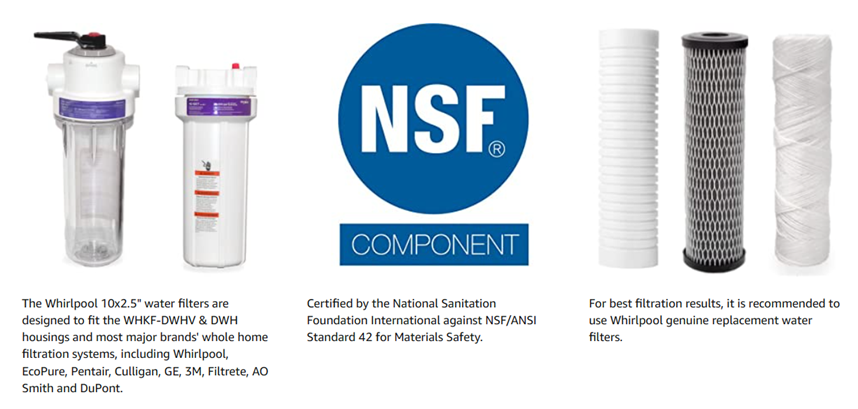 • NSF Tested and Certified: A whole house filter you can trust – certified by the National Sanitation Foundation International against NSF/ANSI Standard 42 for Materials Safety.