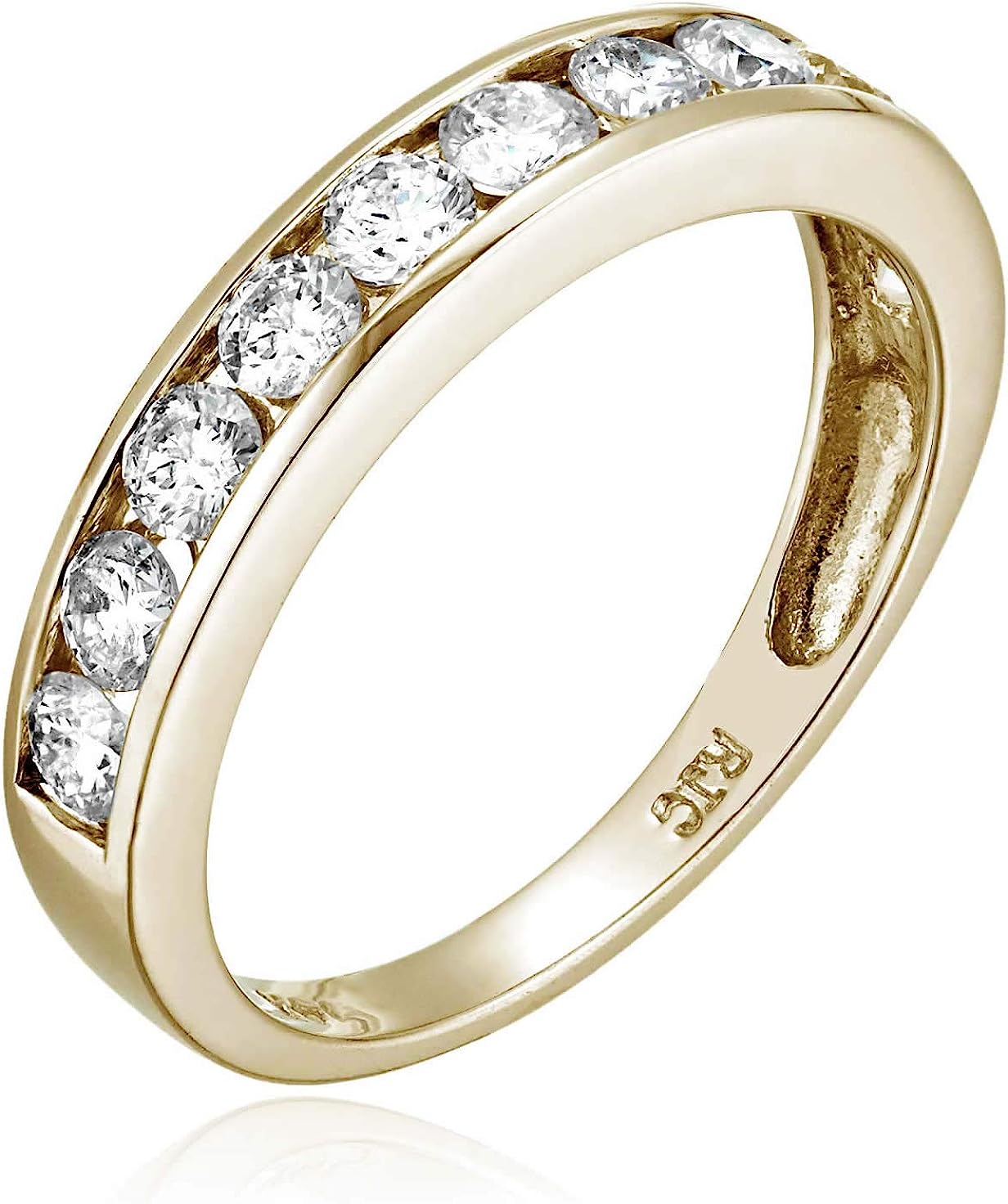 VIR JEWELS 1 carat (ctw) Diamond Wedding Anniversary Band for Women, Half Eternity Round Diamond Engagement Ring 14K Yellow Gold Channel Set, SI2-I1 Clarity Certified, Size 4.5-10