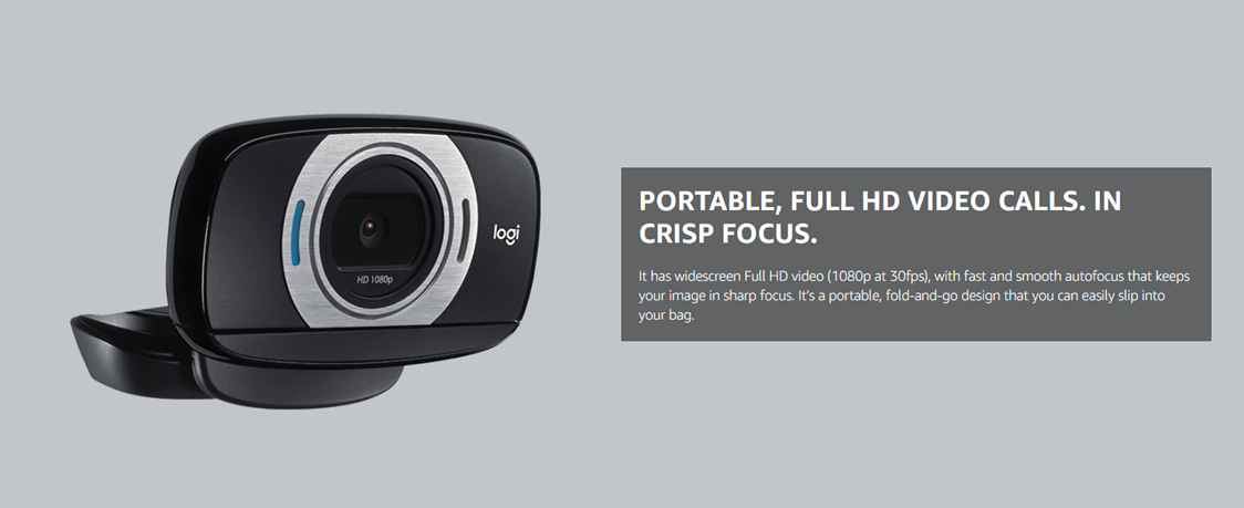 Logitech HD Laptop Webcam C615 with Fold-and-Go Design, 360-Degree Swivel, 1080p Camera