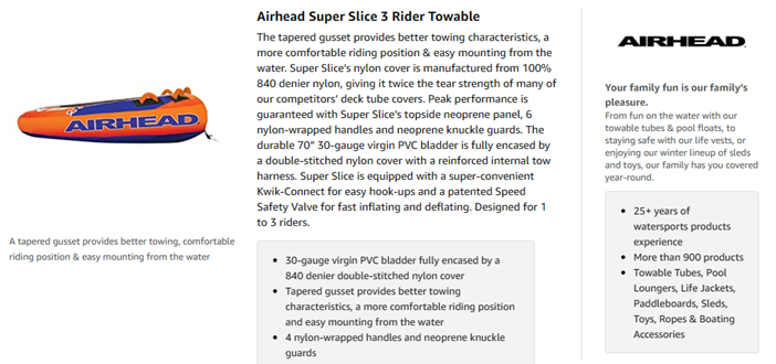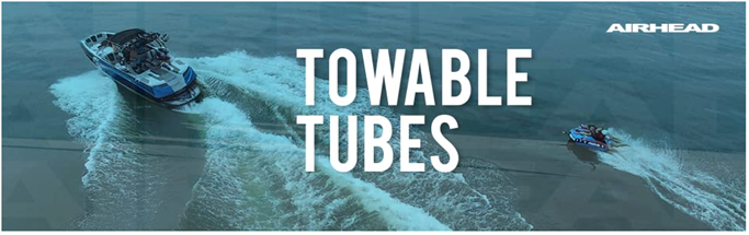 Airhead® Super Slice . Super Slice, Airhead's high performance 3 rider low profile deck tube, will take your breath away! Its got an oversized topside neoprene body panel and 6 deluxe handles with neoprene knuckle guards, an Airhead exclusive. The 30-gauge virgin PVC bladder is fully encased by a rugged double-stitched nylon cover. Super Slice is equipped with a heavy duty Kwik-Connect and Multi-Valve for the ultimate in convenience. It's tapered in back to only 6 inches, for easy boarding from the water. 70 inch diameter.