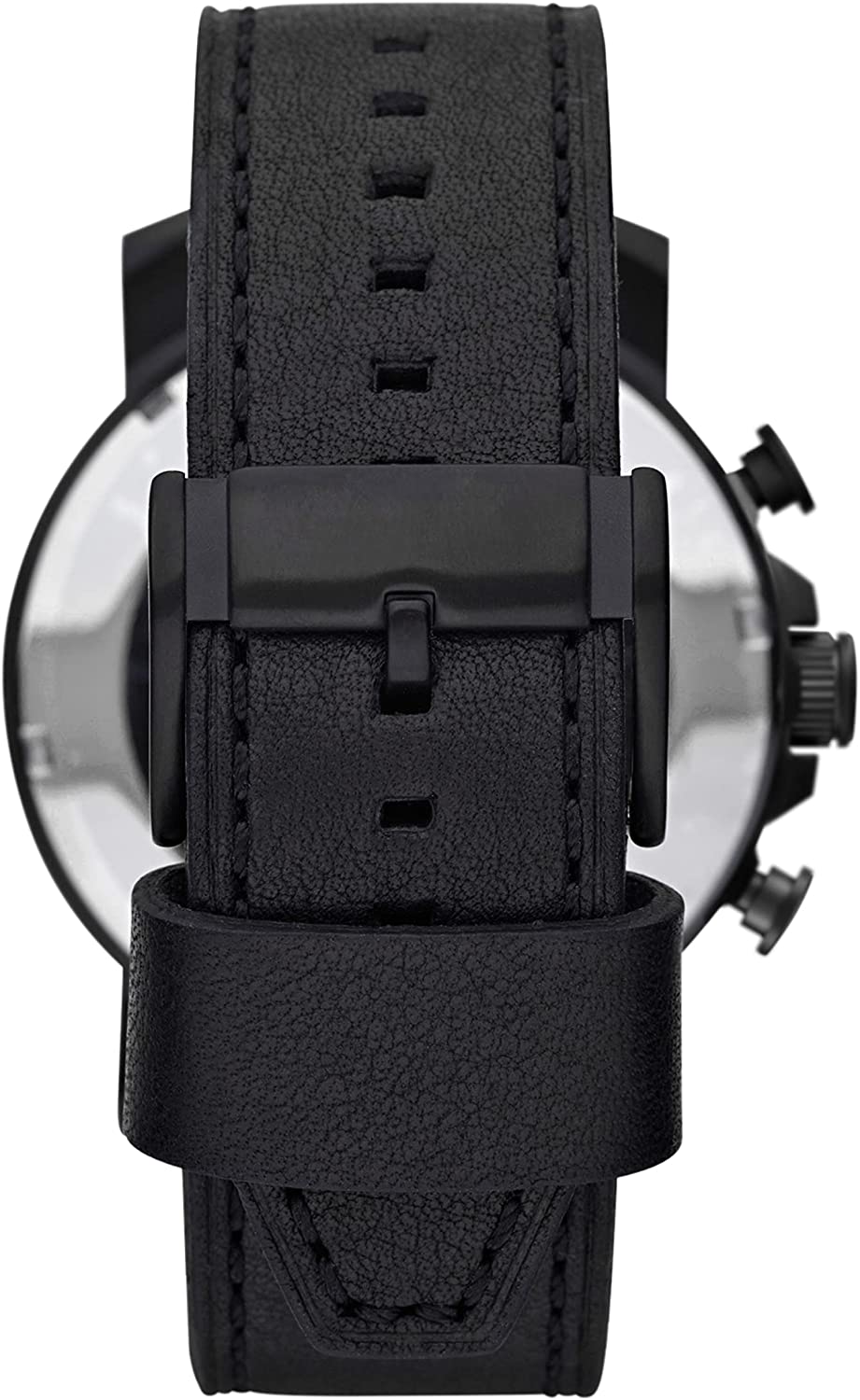 • Black stainless steel case with black dial; genuine black leather band with adjustable buckle closure; interchangeable with all 24mm Fossil watch straps