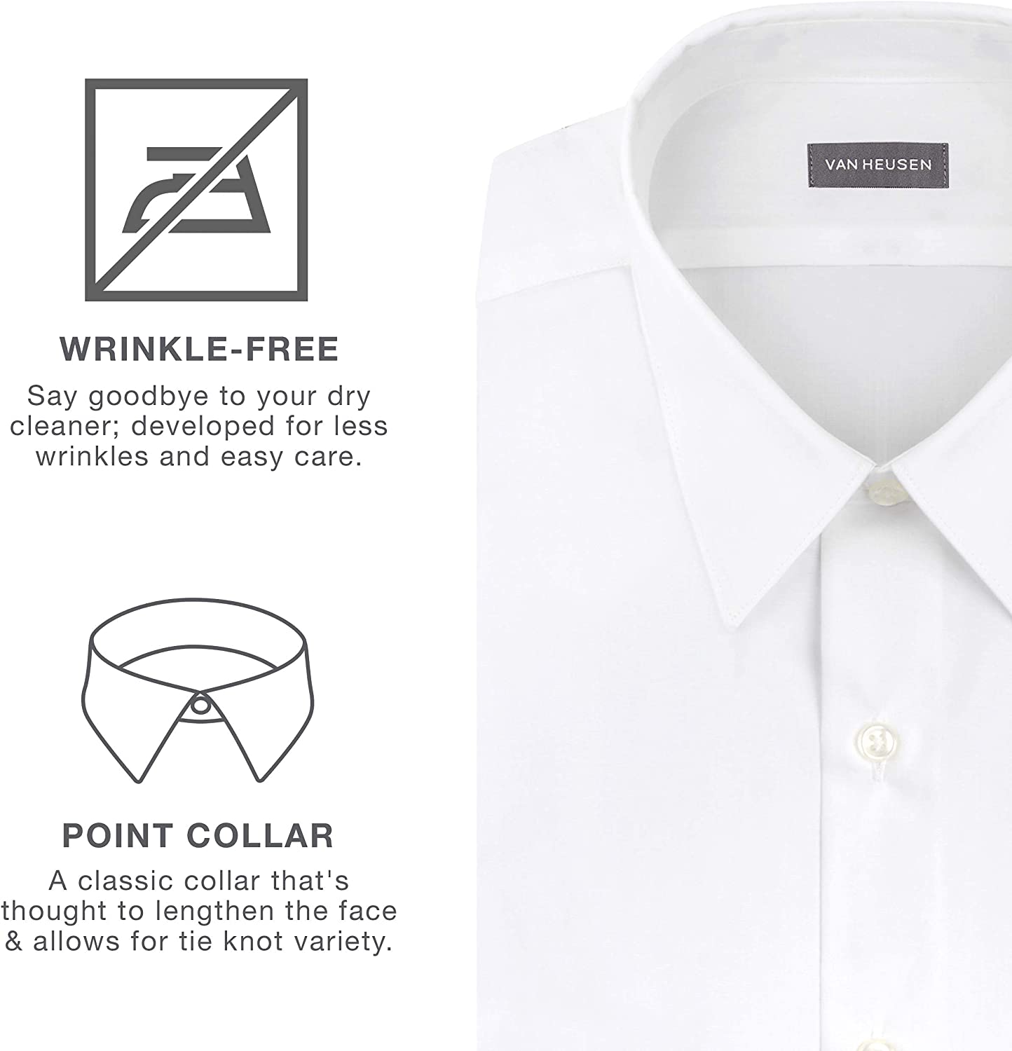 • Point Collar: Classic collar thought to lengthen the face & allows for tie knot variety; can be worn with or without neckwear. Adjustable Cuff: Two button positions allow for a more customized, improved fit. Chest Pocket: Classic design holds all your essentials.