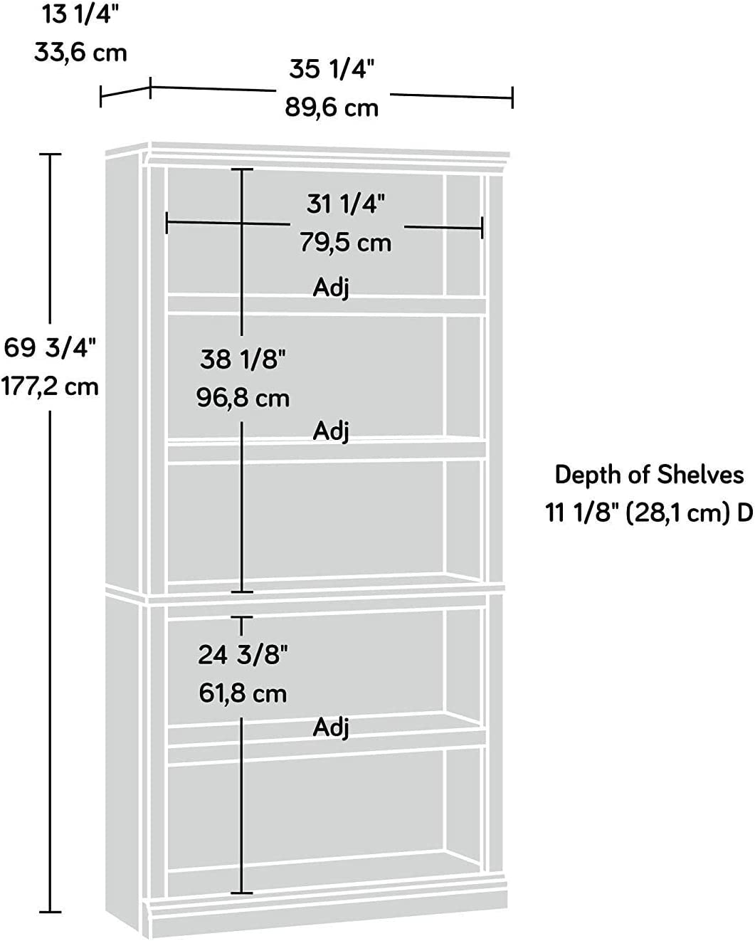 Assembled dimensions: L: 35.276" x W: 13.228" x H: 69.764"