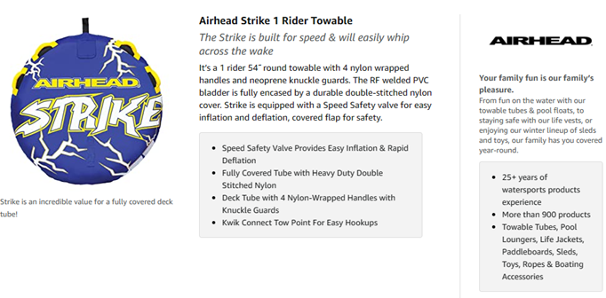 Airhead Strike | 1 Rider Towable Tube for Boating