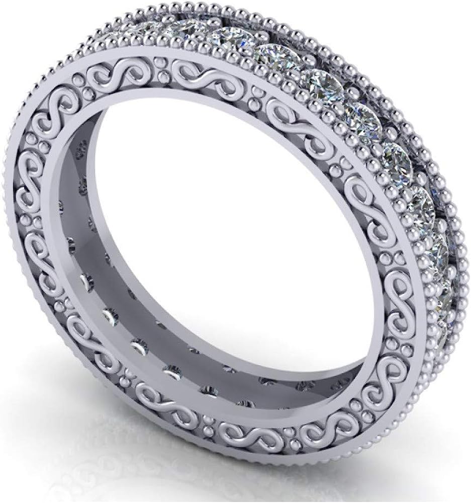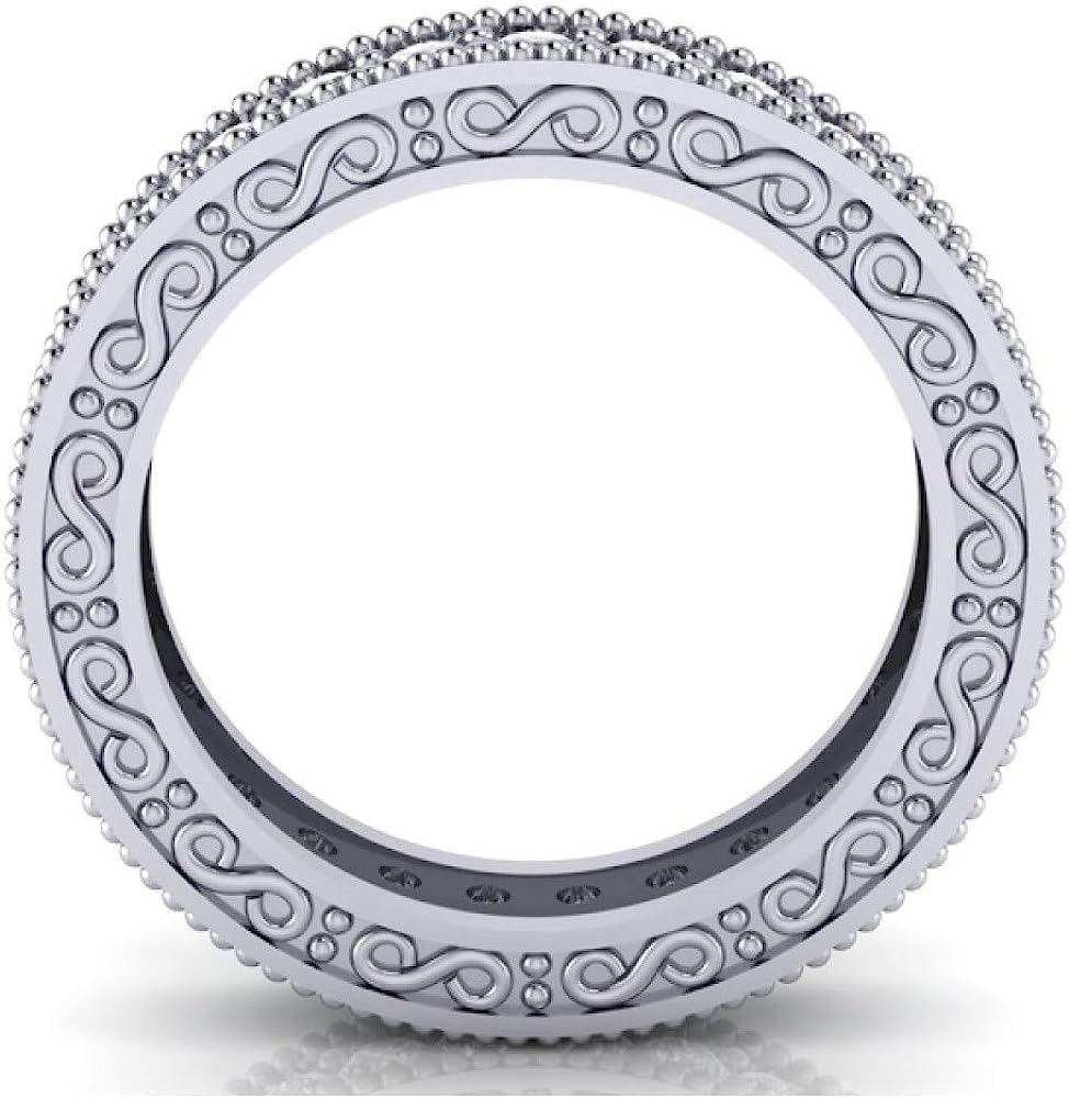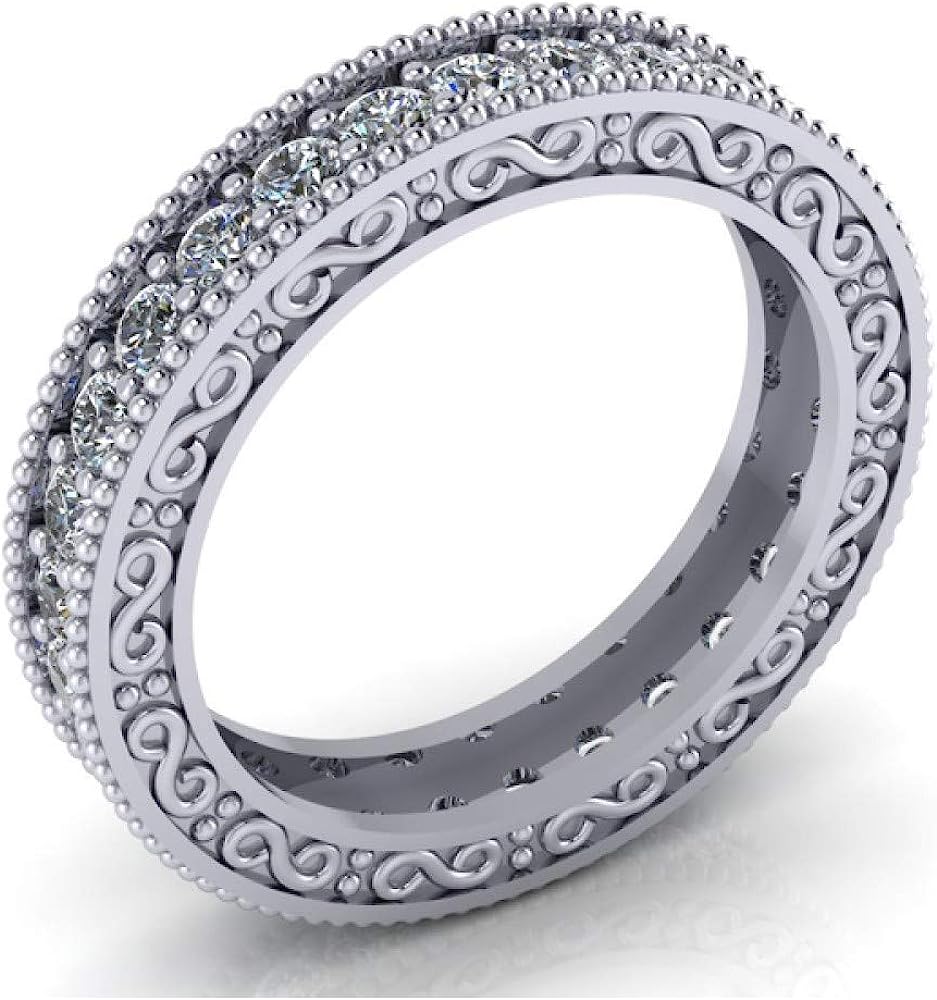 Madina Jewelry 1.00 ct Millgrain Edge Diamond Eternity Wedding Band Ring with Design on The Side in Platinum