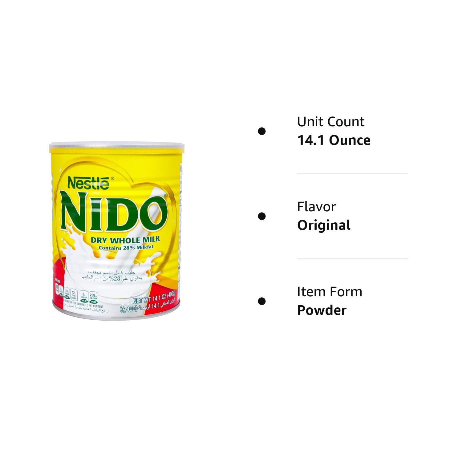 Nestle Nido Milk Powder, Imported from Holland, Specially Formulated, Fortified with Vitamins and Minerals, Easy To Prepare, over 12 months, 14.1 oz