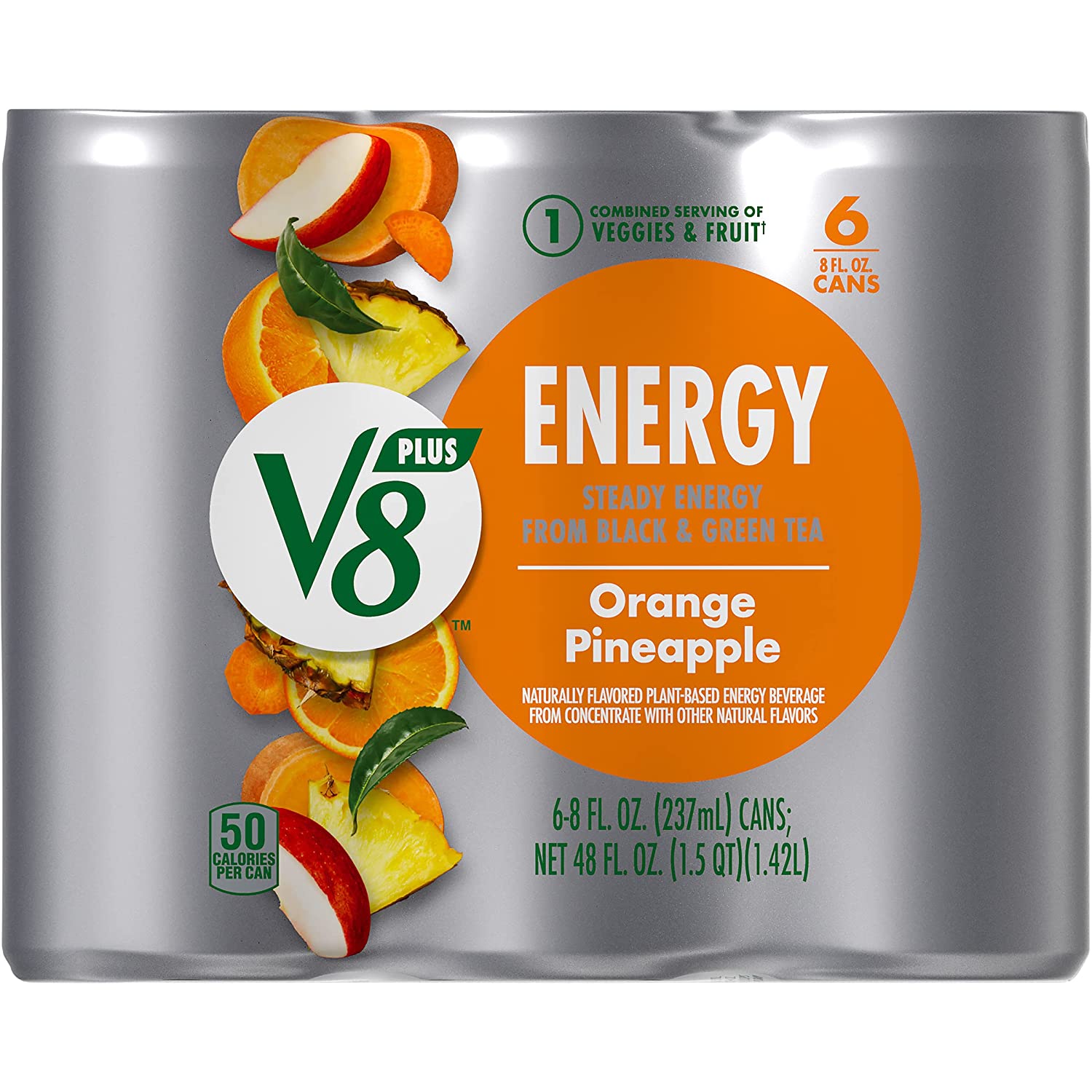 Fruit flavored energy drinks: twenty-four (24) 8 fl oz cans of V8 +ENERGY orange pineapple energy drink