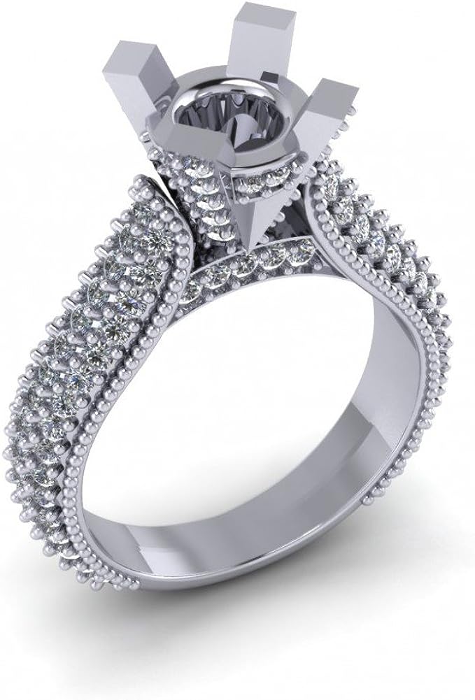 Madina Jewelry 1.90 ct Ladies Round Cut Diamond Semi Mount Ring in Pave Setting in 14 kt White Gold