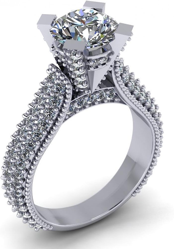 Madina Jewelry 2.65 ct Pave Set Round Cut Diamond Engagement Ring in 18 kt White Gold