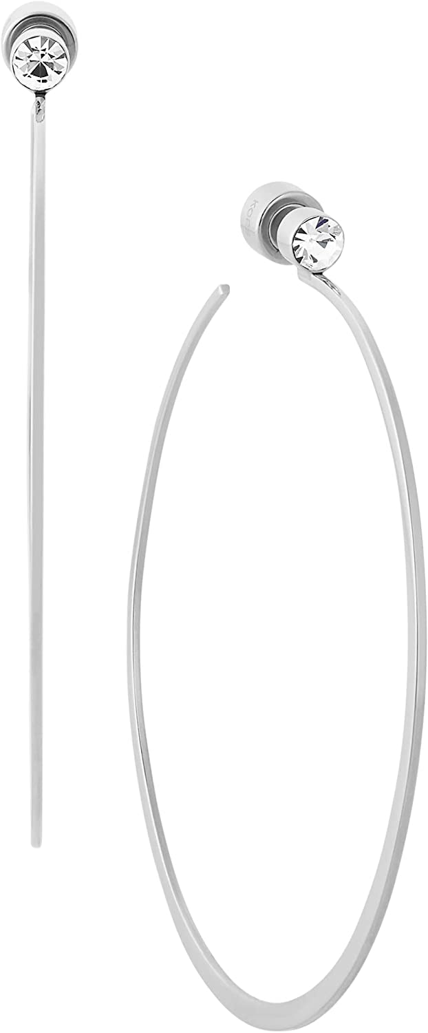 Slender crisscross hoops in polished stainless steel featuring asymmetric pave-set crystals