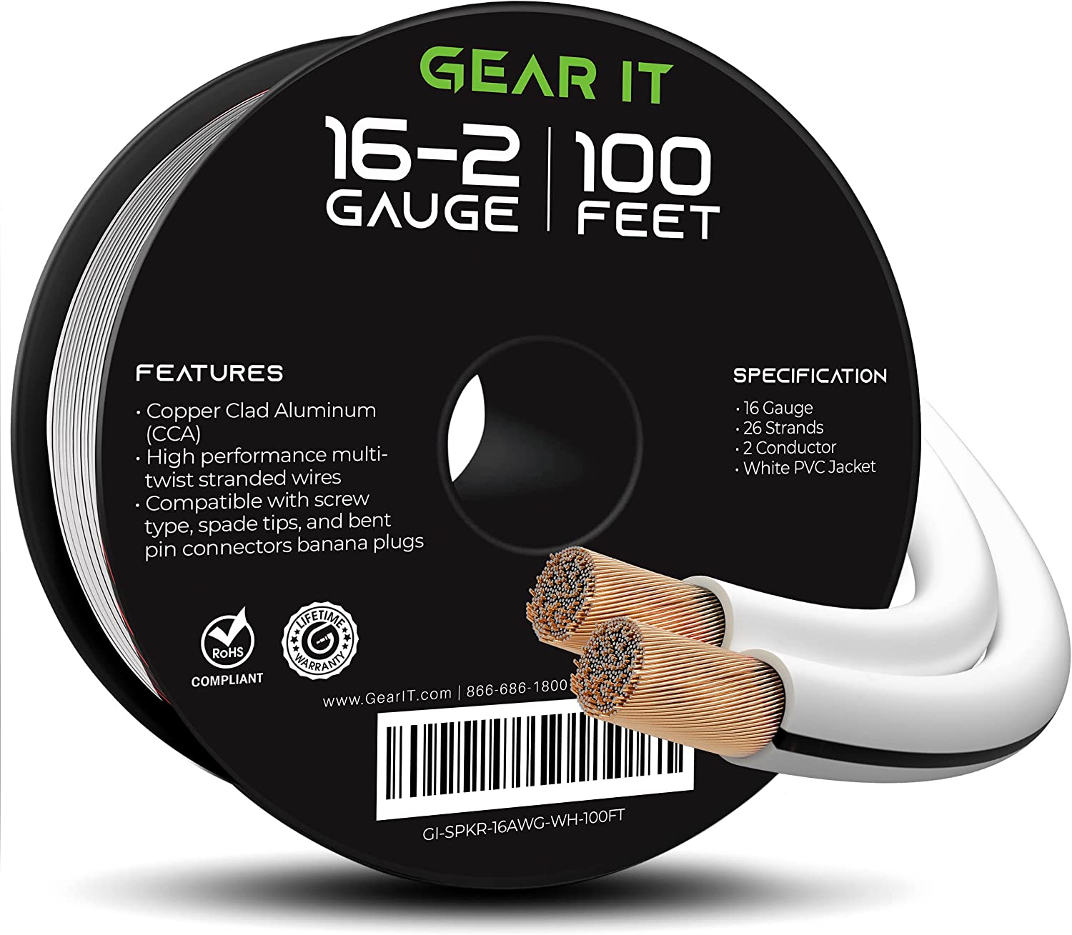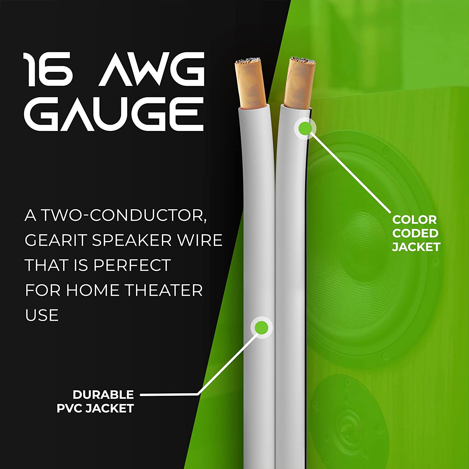 16AWG Speaker Wire, GearIT Pro Series 16 Gauge Speaker Wire Cable (100 Feet / 30.48 Meters) Great Use for Home Theater Speakers and Car Speakers, White