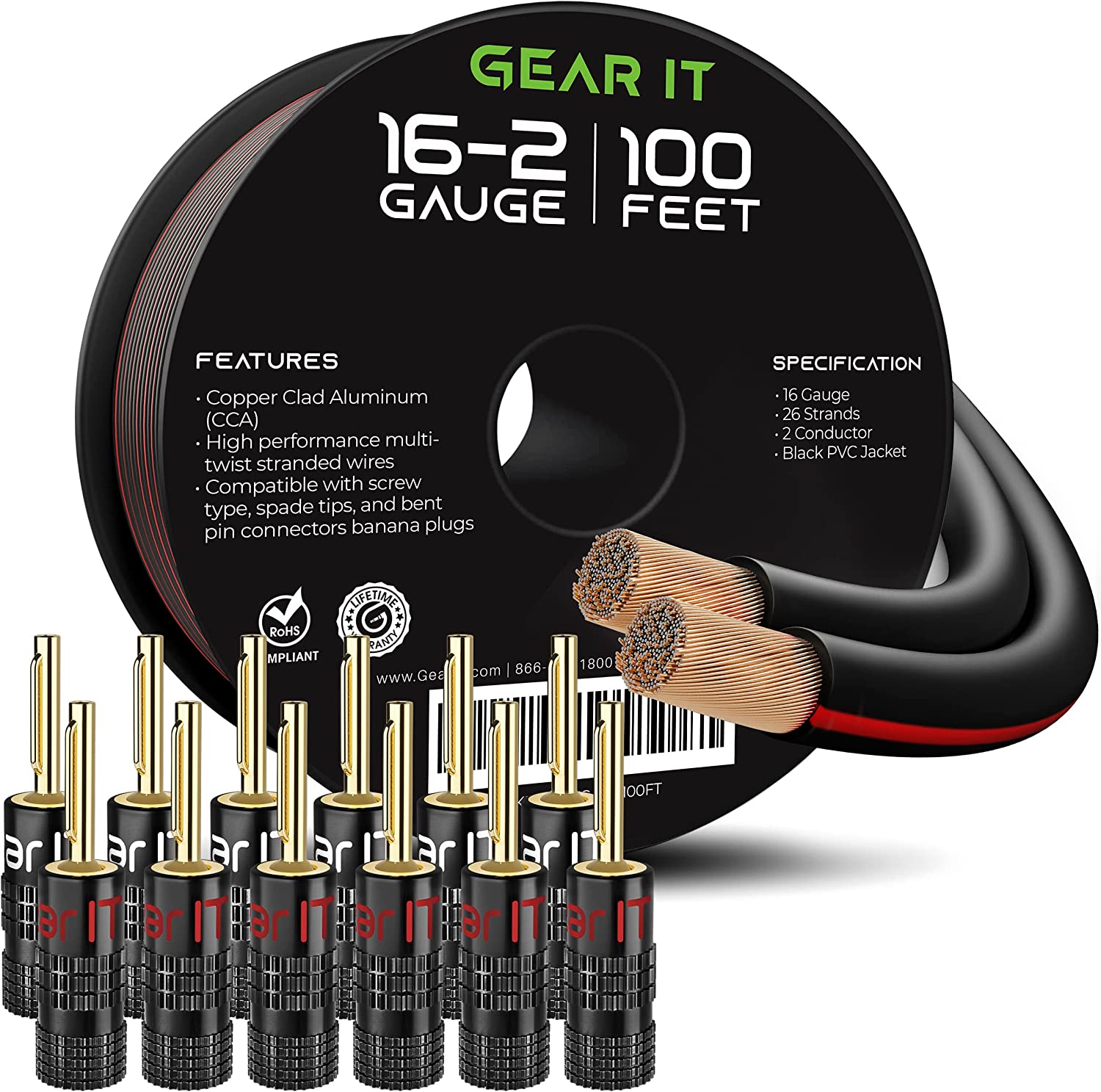• CUSTOM INSTALLATIONS – You can use this speaker wire to pair with banana plugs, spade tips, or bent pin connectors to connect your speakers to your A/V receiver or amplifier with this GearIT Pro Series speaker wire.