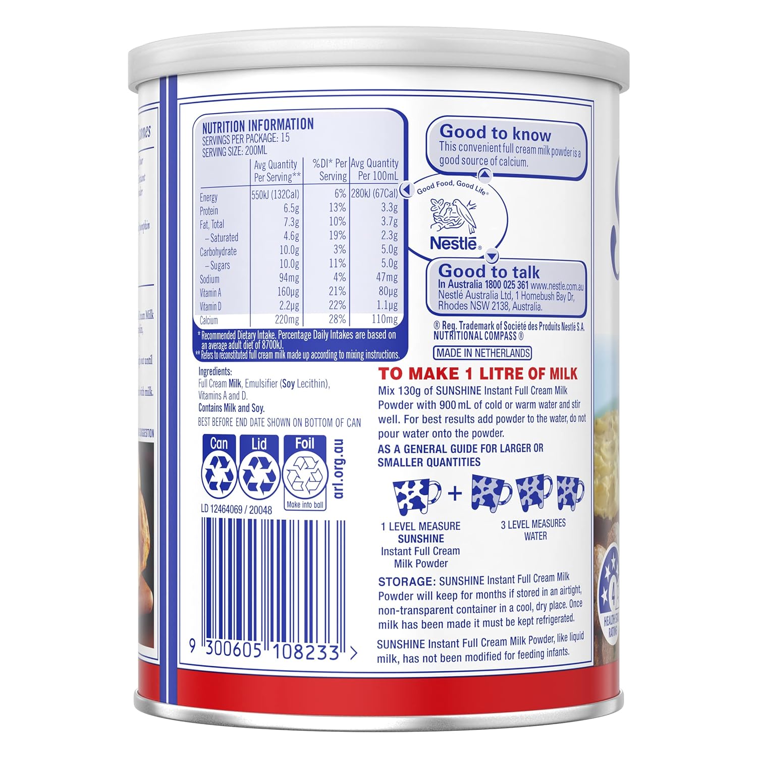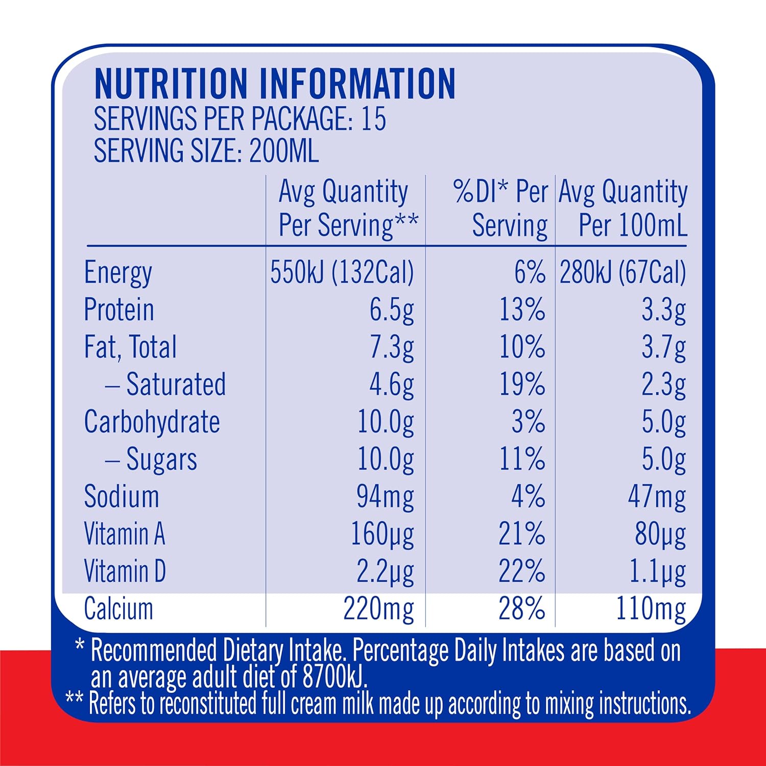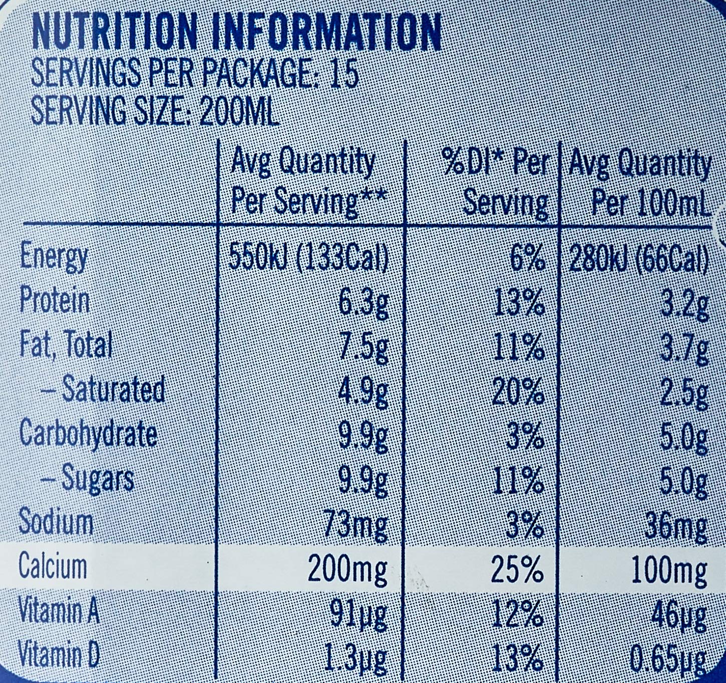 Great source of calcium giving you 30% of your recommended daily calcium