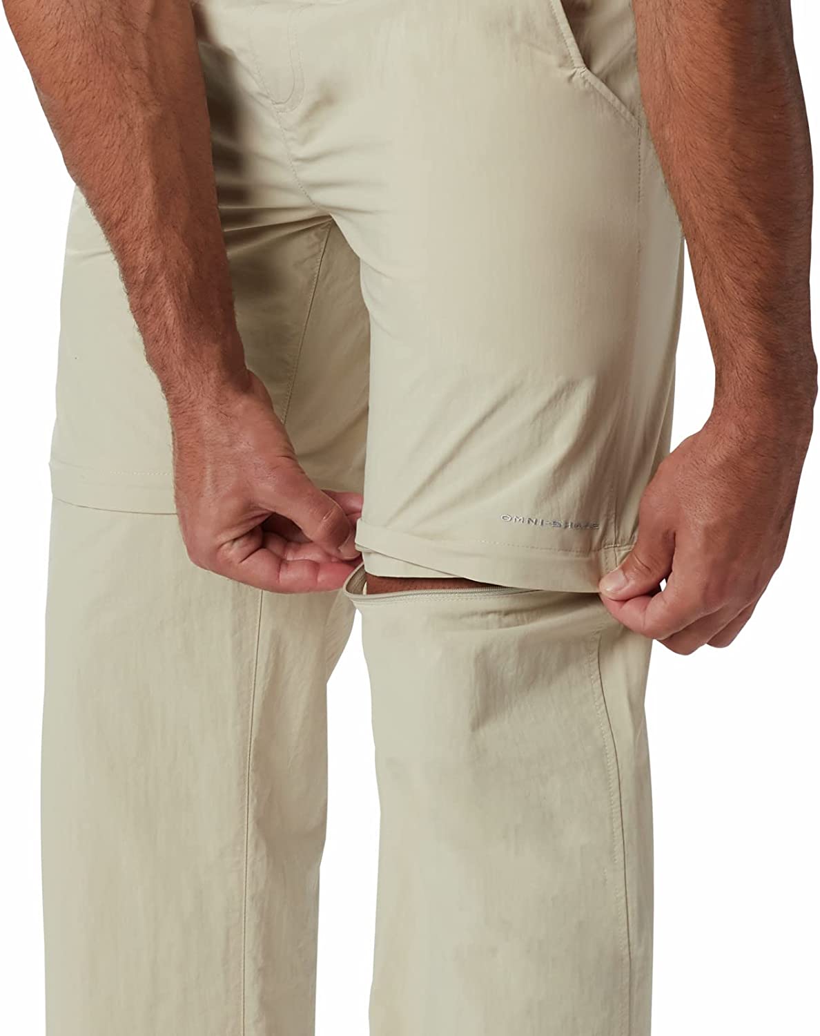 • HANDY FEATURES: Thoughtful touches include stretchy elastic at the waist, an interior mesh brief, a zip-closed security pocket, two hand pockets, and zip-off legs.