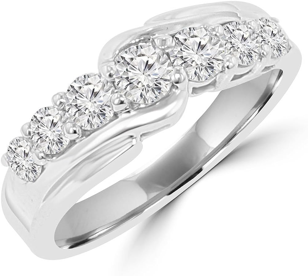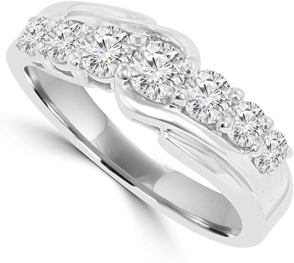 Madina Jewelry 1.15 ct Round Cut Diamond Wedding Band Ring in Prong Setting in 18 kt White Gold