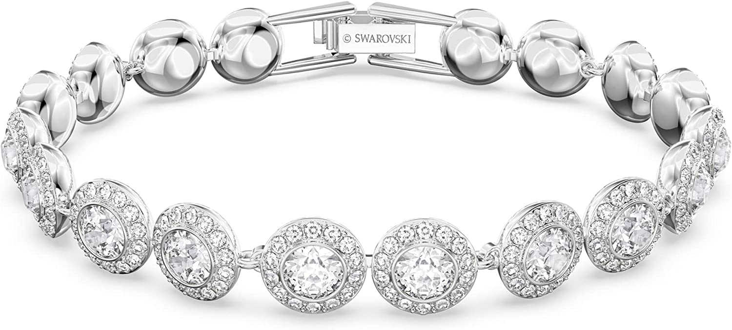 • Items delivered: 1 x Swarovski angelic collection tennis bracelet for women, 6.7 inch rhodium plated chain, lined with sparkling white crystal stones, with Swarovski bracelet box