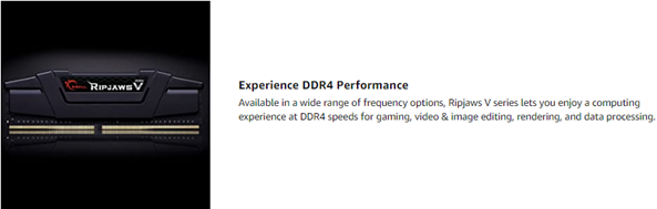 Ripjaws V series DDR4 DRAM memory is designed for sleek aesthetics and performance, making it an ideal choice for building a new PC system or for upgrading your system memory.