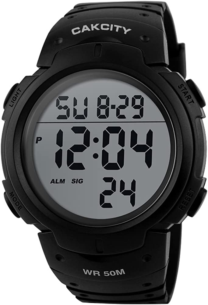 CakCity Mens Digital Sports Watch LED Screen Large Face Military Watches for Men Waterproof Casual Luminous Stopwatch Alarm Simple Army Watch