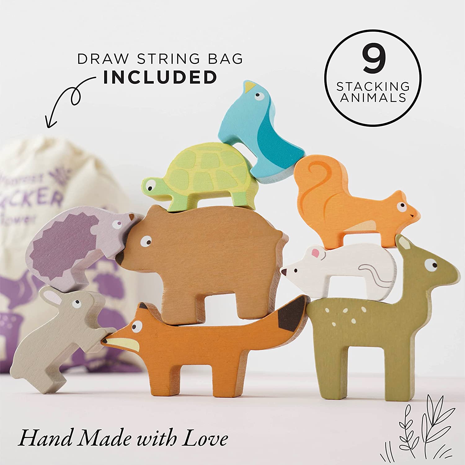 Kids love the Wooden Petilou Forest Stacker & Bag Educational Balancing Activity Toy from Le Toy Van!Our toys are designed to play to developing senses and are packed with layers of discovery for young, growing imaginations. The safety of your child is our number one priority. We rigorously test and regularly exceed toy safety standards. We only ever use safe, non-toxic paint and work hard – from design to manufacture – to ensure kid safe edges on our toys, for safe play every day.Features:Hand painted, Suitable for toddlers and older children 12 months+, Made from durable, sustainable rubberwood, this allows long lasting fun, whilst caring for our planet. Contains: 9 wooden animals, Drawstring bag. Le Toy Van has been proudly making imaginative wooden toys designed in London since 1955. Including local kids in their toy designing process and working with trusted suppliers for over 25 years, supporting them in ethical work practices. All Le Toy Van multi-awarding winning toys are ethically made from sustainable, tactile Rubberwood and are uniquely designed and hand-finished.We care for our planet and believe wood is good! We use and replant a by-product of the rubber industry - Rubberwood, which used amongst over woods is recycled into our beautifully crafted toys.