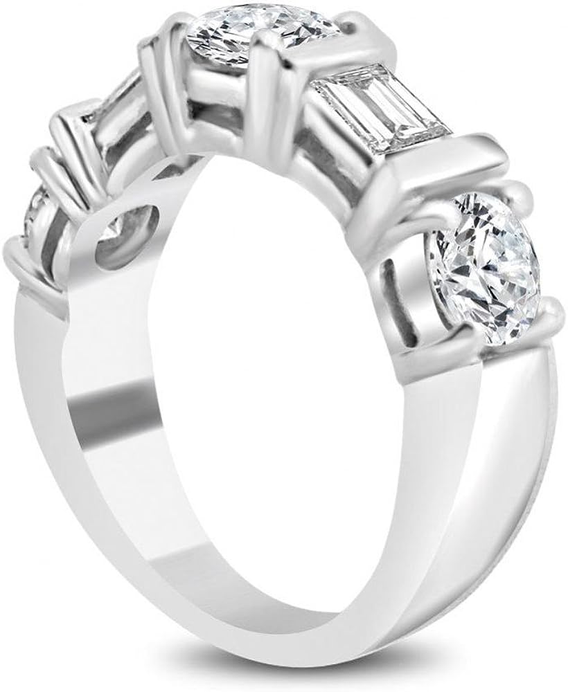 Madina Jewelry 1.54 ct Round and Baguette Cut Diamond Wedding Band Ring in Platinum