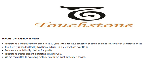 BRAND : Touchstone is the Premium Fashion Jewelry Brand Of India since 20 years. They have been recreating the exquisite treasure of Indian Heritage Jewelry and retailing across India. Now available in the U.S.A. at your doorstep. PACKAGING In Branded Box perfect for gifting. Extra stones and Ear push.