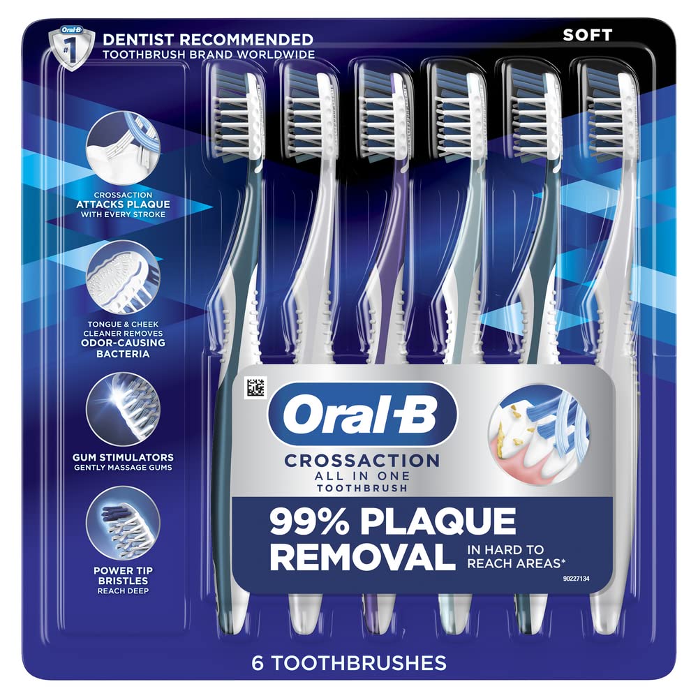 Oral-B CrossAction All In One Soft Toothbrushes, Deep Plaque Removal, 6 Count