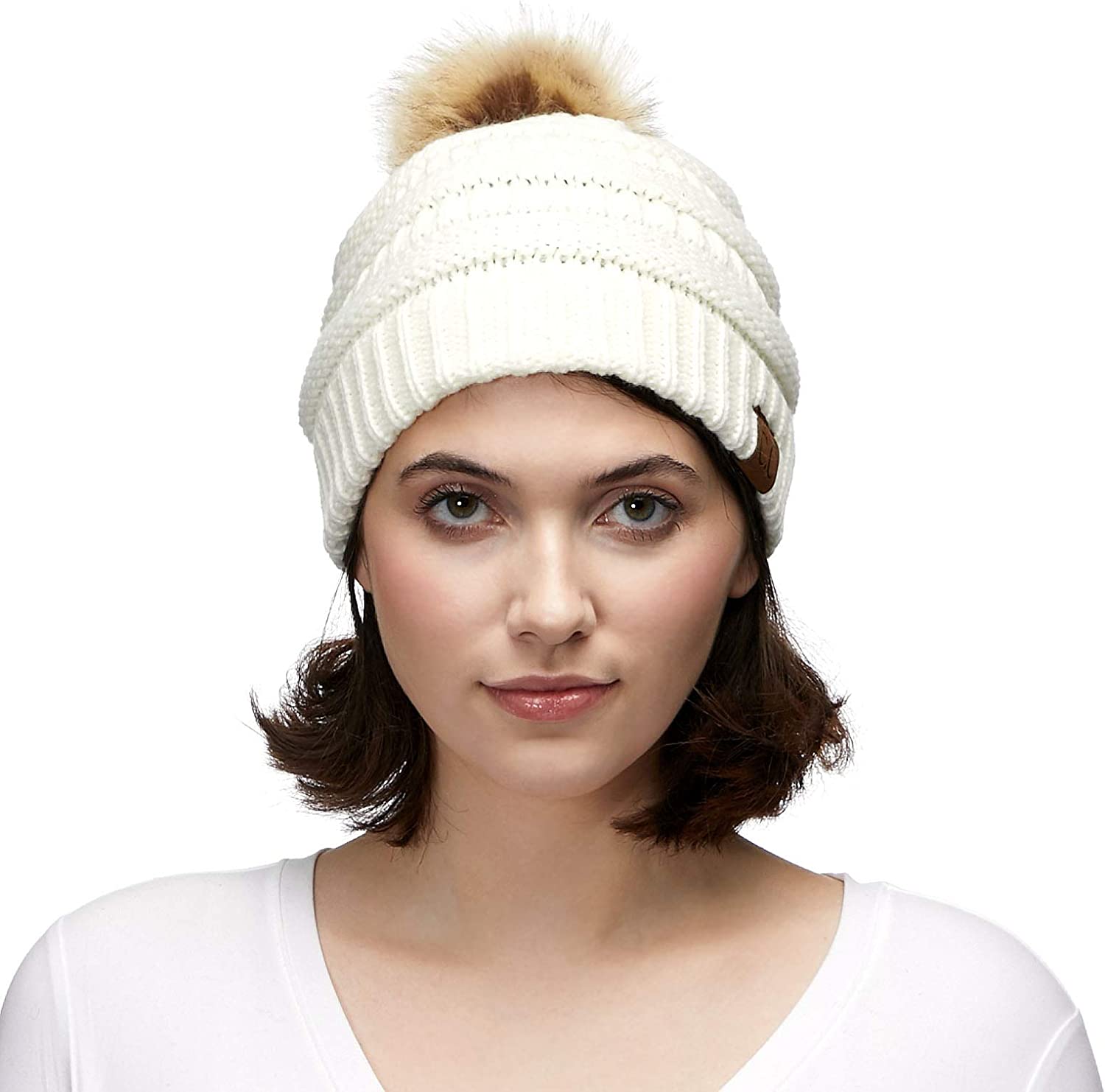 Unisex Knitted Beanie with Faux Fur Pom