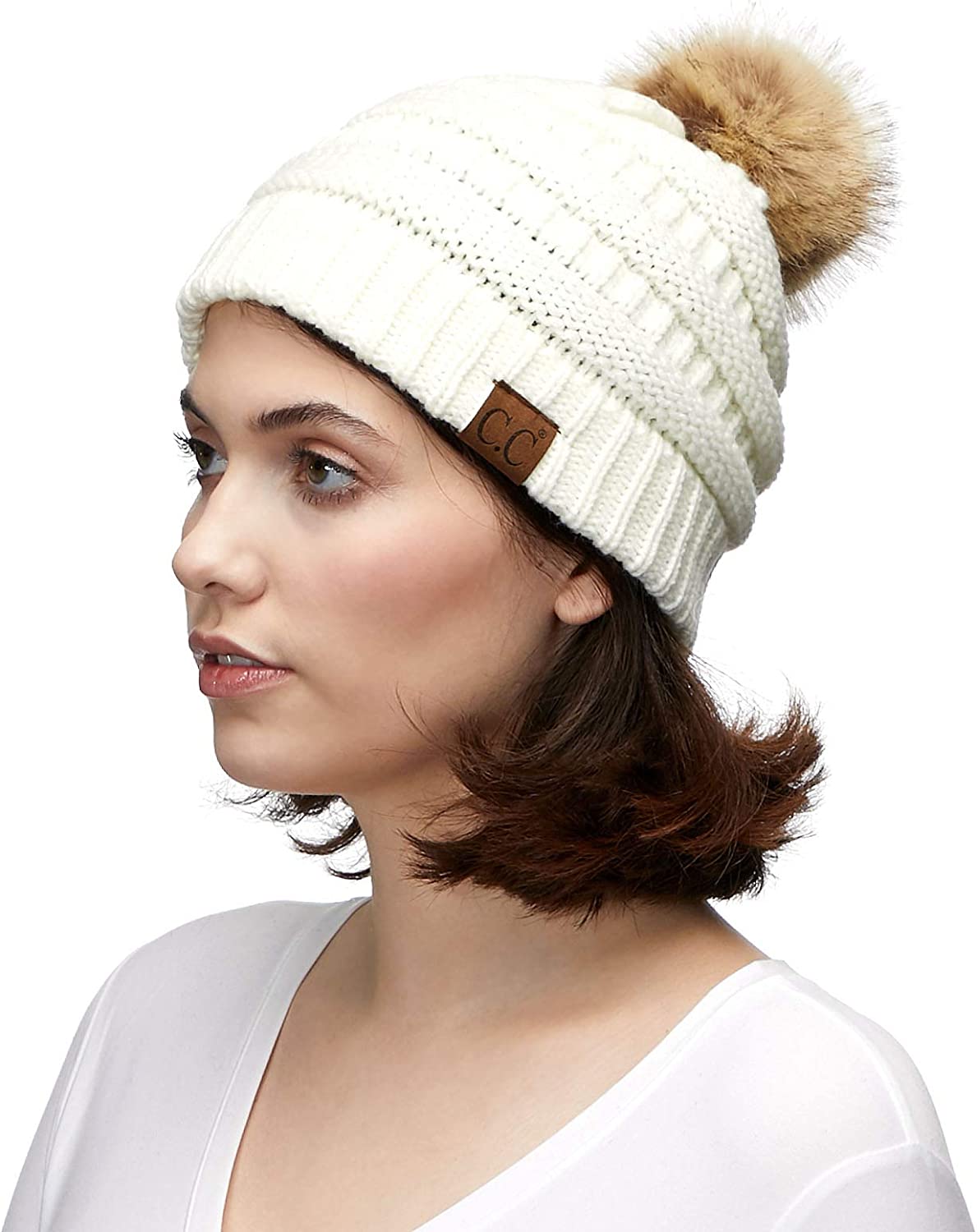 C.C Hatsandscarf Exclusives Unisex Solid Ribbed Beanie with Pom (HAT-43)