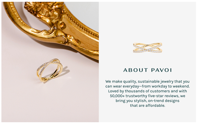 • ✦ SUSTAINABILITY ✦ PAVOI is dedicated to sustainability throughout our entire product cycle. Our jewelry is made from 100% recycled materials and we package in 99% recycled and compostable materials. We work to reduce our carbon emissions and offset plastic consumption by removing 275,000 bottles from oceans annually. We are committed to maintain a balanced and eco-friendly business that minimizes our environmental impact. Trust that PAVOI is continuously working towards a greener future.