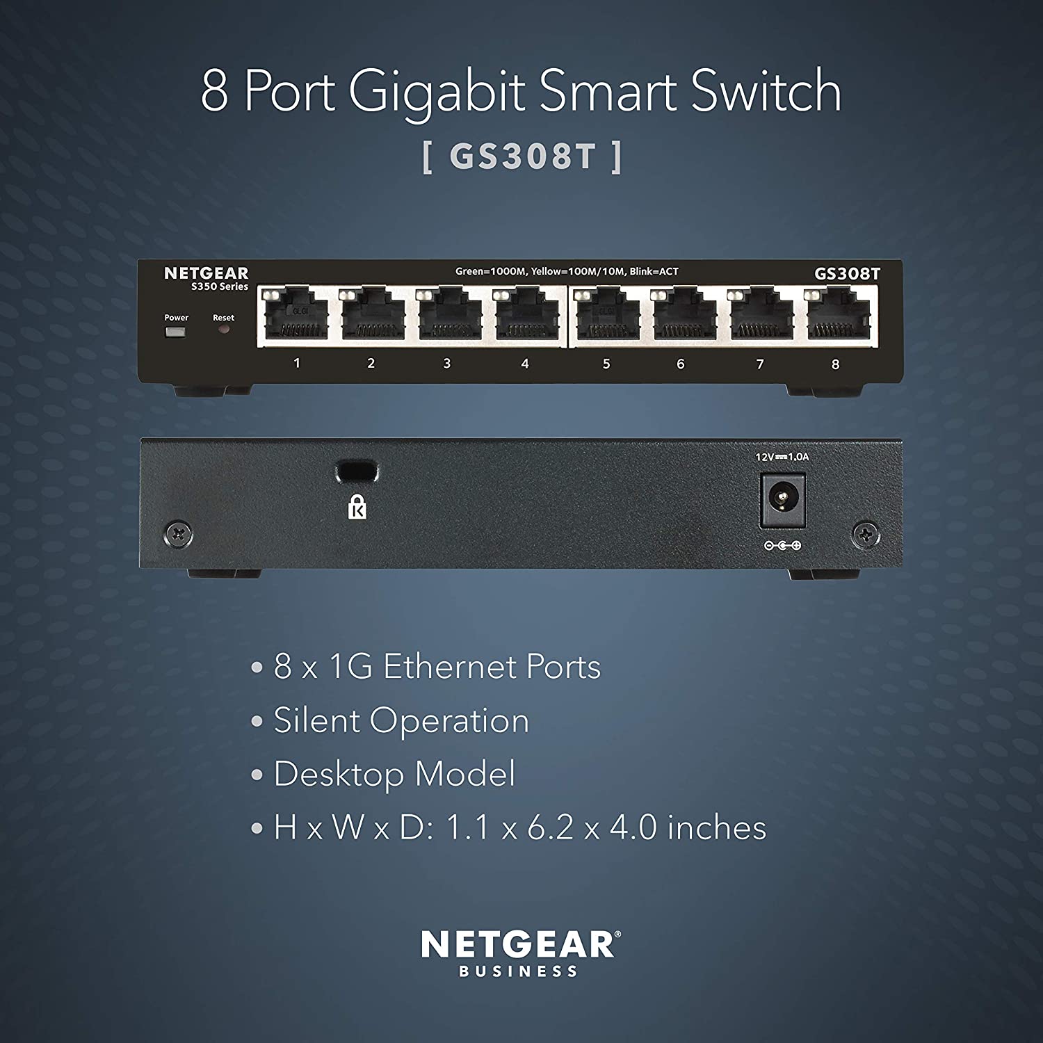 NETGEAR 8-Port Gigabit Ethernet Smart Switch (GS308T) - Managed, Desktop, Silent Operation, S350 Series