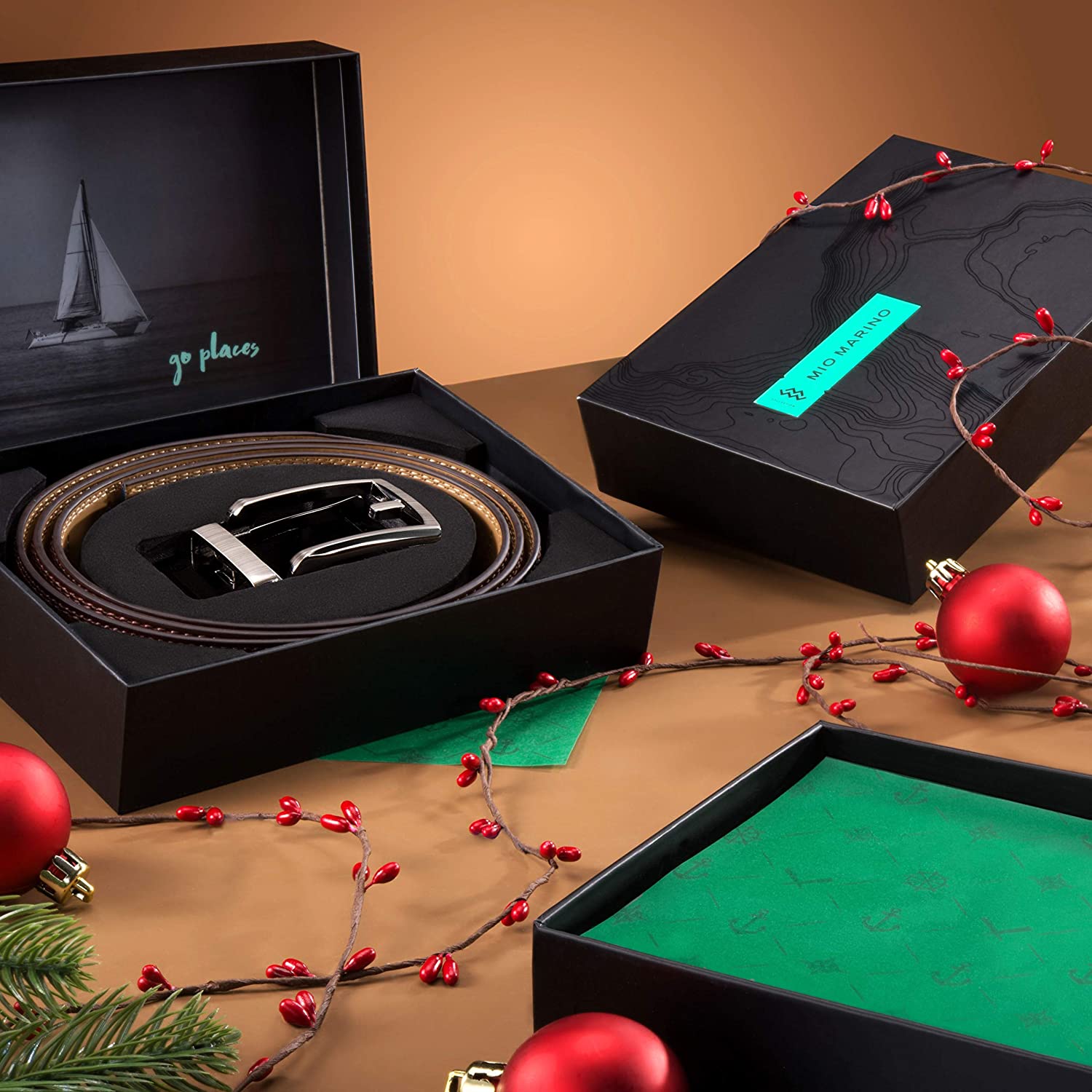 Marino Men’s Genuine Leather Ratchet Dress Belt With Automatic Buckle, Enclosed in an Elegant Gift Box