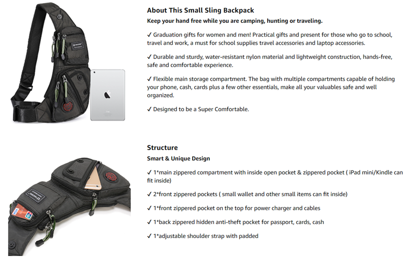 - ✅【Unbalance backpack wearing styles】It has great flexibility. You can use it both as chest pack and shoulder bag. Also it can be worn in the front or back of body.
