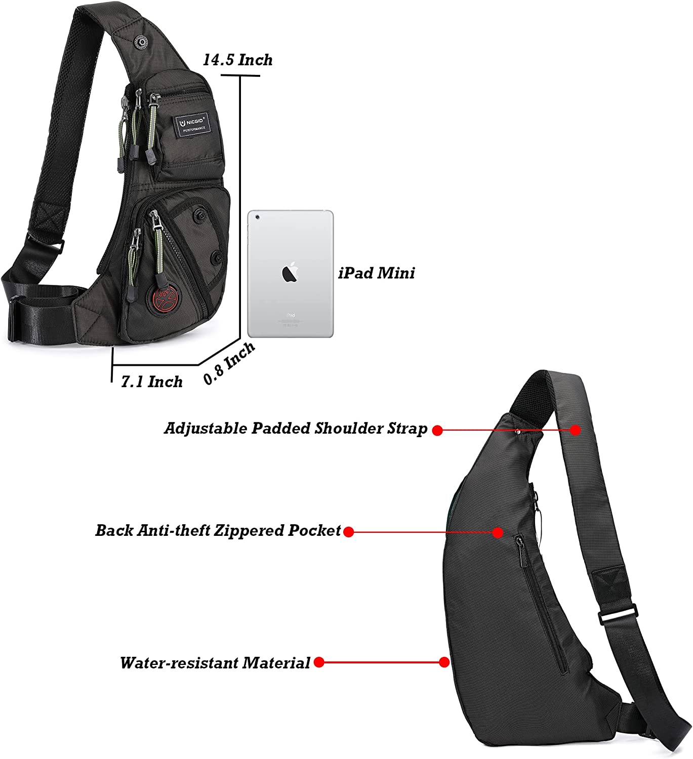 - ✅【Multiple storage purpose sling bag】Large main compartment with inner open cellphone pouch is perfect for iPad Mini with cover, Kindle, Small notebooks, Large cellphone. 4 front zippered pockets are great for various of small items.