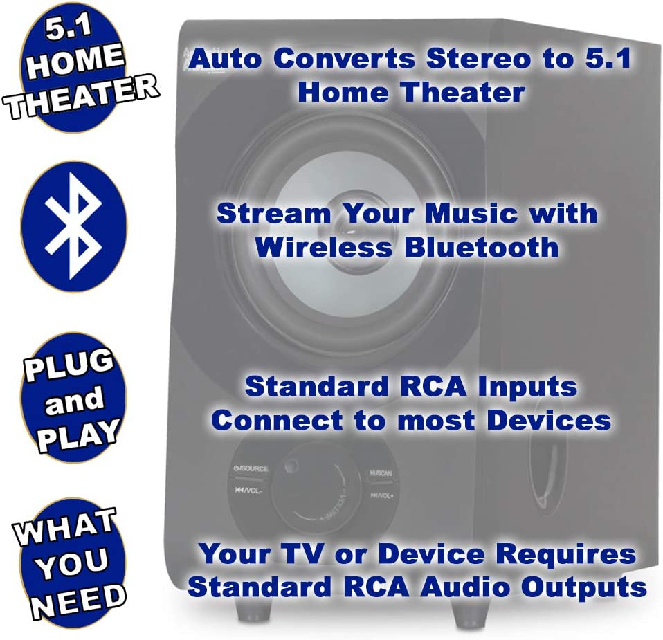 Bluetooth 5. 1 Home Theater Speaker System - Stream Music From Your Phone To The Built In Bluetooth Receiver, Integrated Power Amp With 700 Watts System Power, Pro Surround Function Automatically Converts Stereo To 5. 1 Sound, Fm Tuner