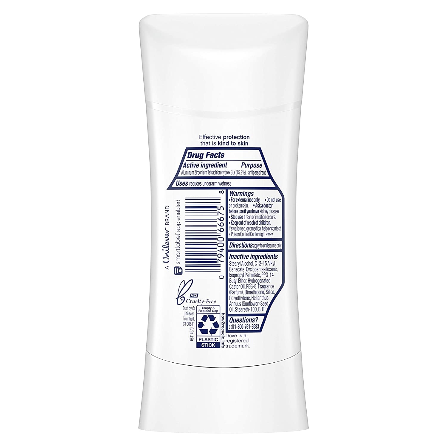 Long-lasting antiperspirant protection, gentle skin care, and a fresh, lavender scent – who says you can’t have it all? Start your day with Dove Advanced Care Lavender Fresh Antiperspirant deodorant.Stick. Enriched with our signature 1/4 moisturizers with natural oil, this antiperspirant stick leaves you with soft, comfortable underarms. Made with a kind-to-skin formula and containing 0 percent alcohol (ethanol), it helps delicate skin recover from underarm irritation caused by shaving. Use this antiperspirant deodorant.regularly to enjoy comfortable and healthy-feeling underarms. Keeping you fresh all day, this gentle antiperspirant for women protects from sweat and odor for up to 48 hours. If you’ve been wondering how to get soft, comfortable underarms. choose our antiperspirant stick and enjoy beautifully fresh underarms.that stay dry all day long. For best results, apply this Dove antiperspirant deodorant.to dry skin after showering and enjoy fresh, comfortably dry skin from morning to night. Dove is certified cruelty-free by PETA because we believe that real beauty is cruelty-free. We’re on a mission to help women raise their self-esteem – because we believe beauty should be a source of confidence, not anxiety. Dove Antiperspirant deodorant. deliver effective underarm protection and are kind to skin, so women can be free of underarm inhibitions and live beautifully unselfconsciously.