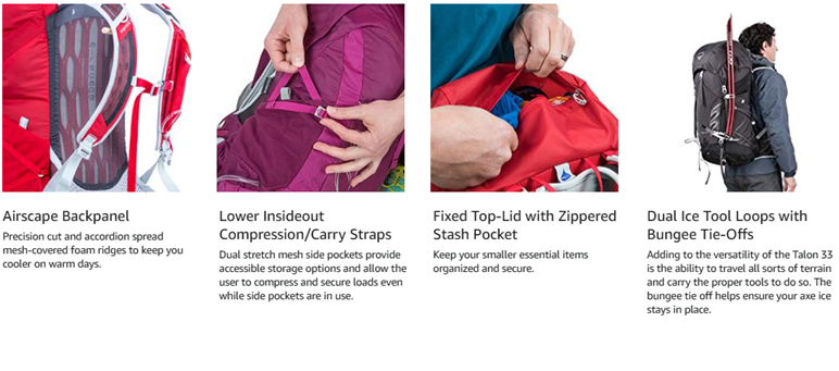 Simpler is often better, and if you prefer going light and moving fast in the woods, mountains and beyond, the Talon 33 is the pack for you. 33L of capacity is perfect for committing day hikes and lightweight overnight trips. Ventilated and comfortable, the BioStretch harness and continuous wrap hipbelt combine to create an incredibly stable carry system that hugs your body so you can stay balanced on the trail, ridge or peak. We scratched our heads and updated our AirScape backpanel to use less material and glue while making it more breathable to keep you cool on hot days. When uphills turn technical, our Stow-on-the-Go trekking pole carry system keeps your hands free for upward movement. Zippered hipbelts, side stretch mesh pockets with dual access, a harness pocket, and top-lid storage provide all the organization you need.