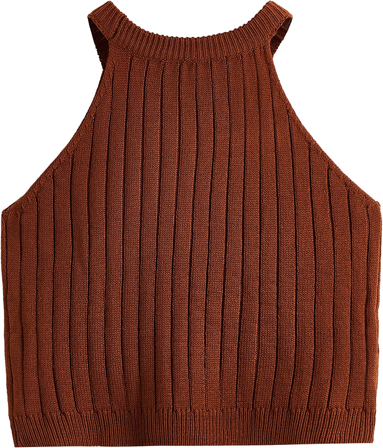 SweatyRocks Women's Knit Crop Top Ribbed Sleeveless Halter Neck Vest Tank Top