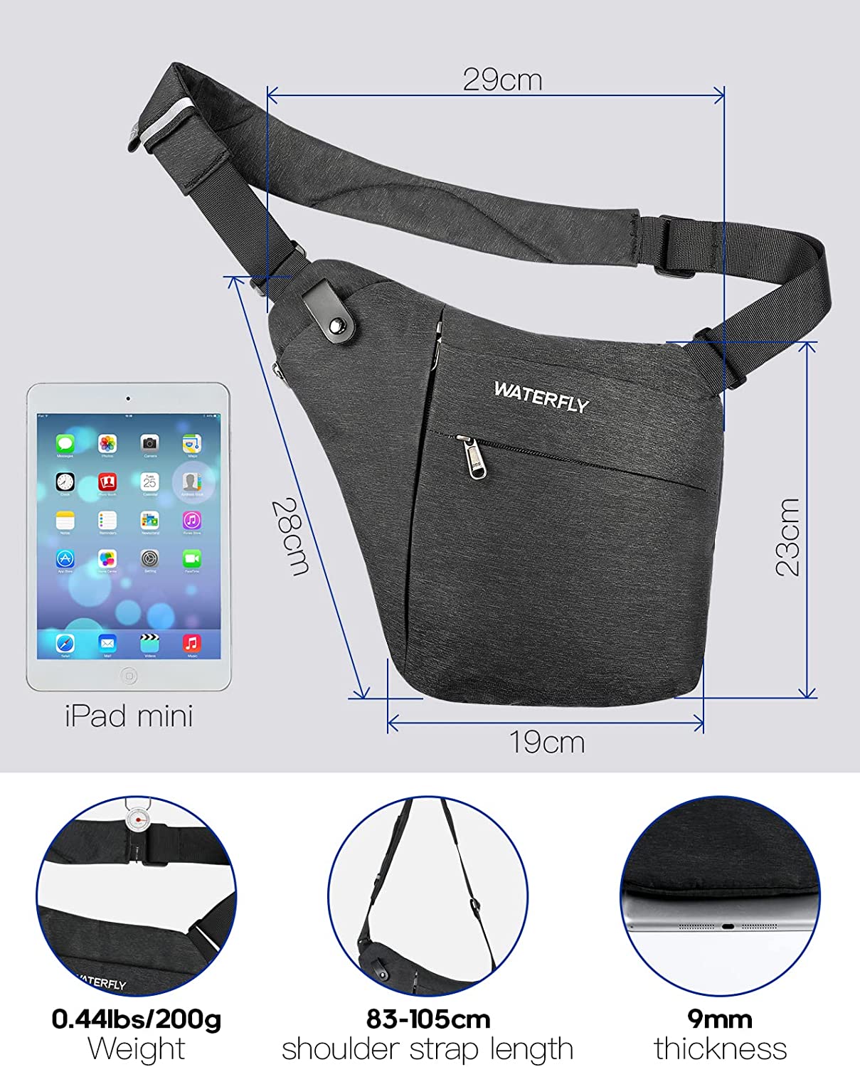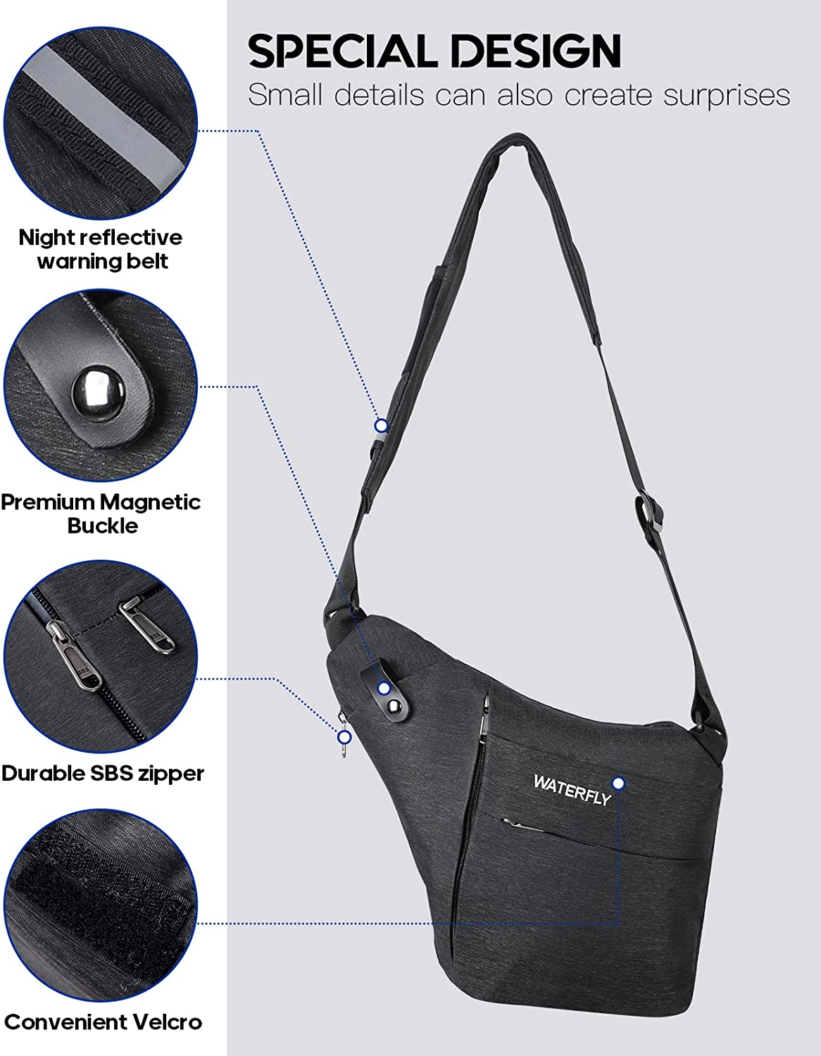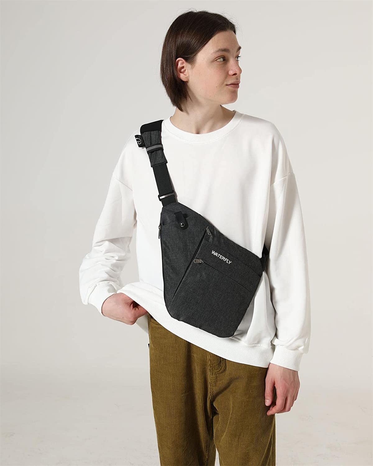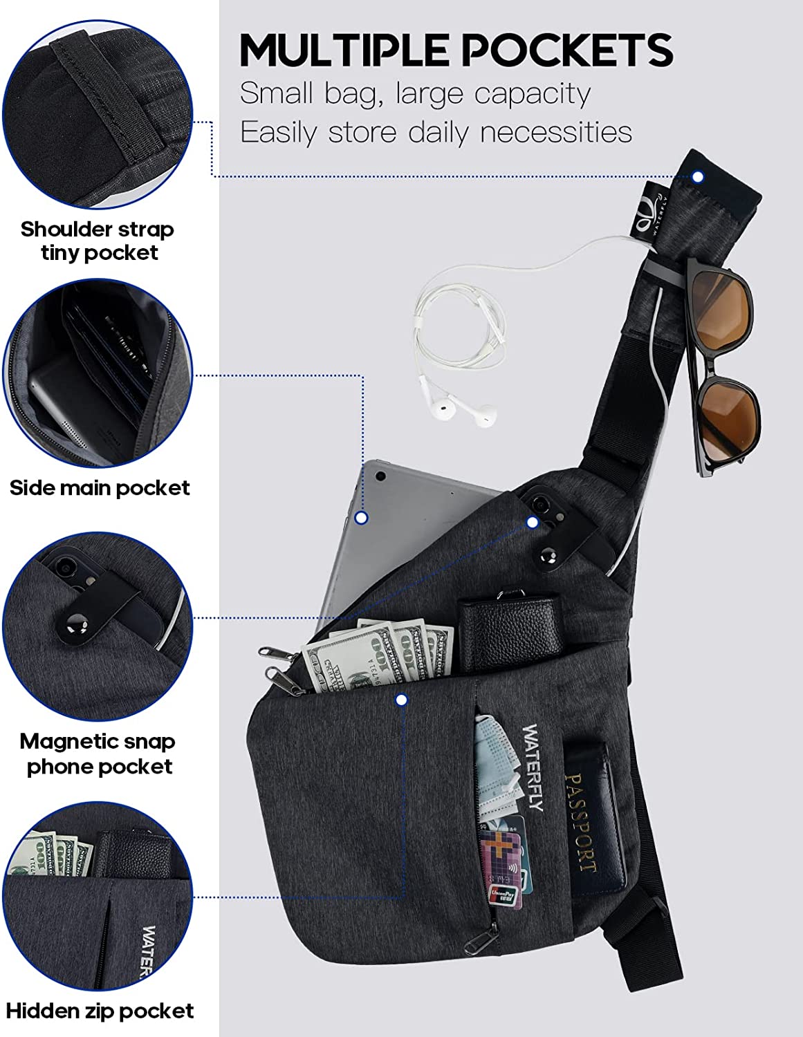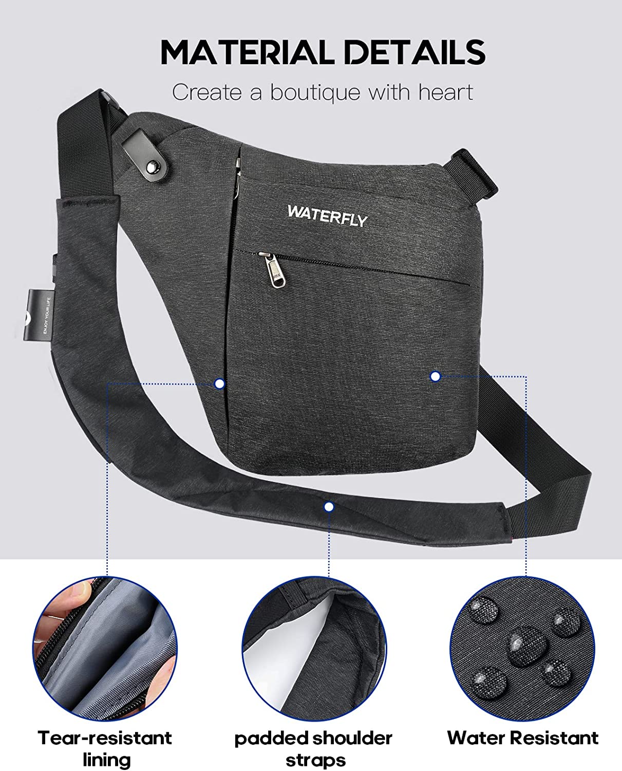 WATERFLY Sling Crossbody Chest Bag: Slim Anti-Theft Cross Body Bag Over Shoulder Backpack Stealth Side Pack Man Woman