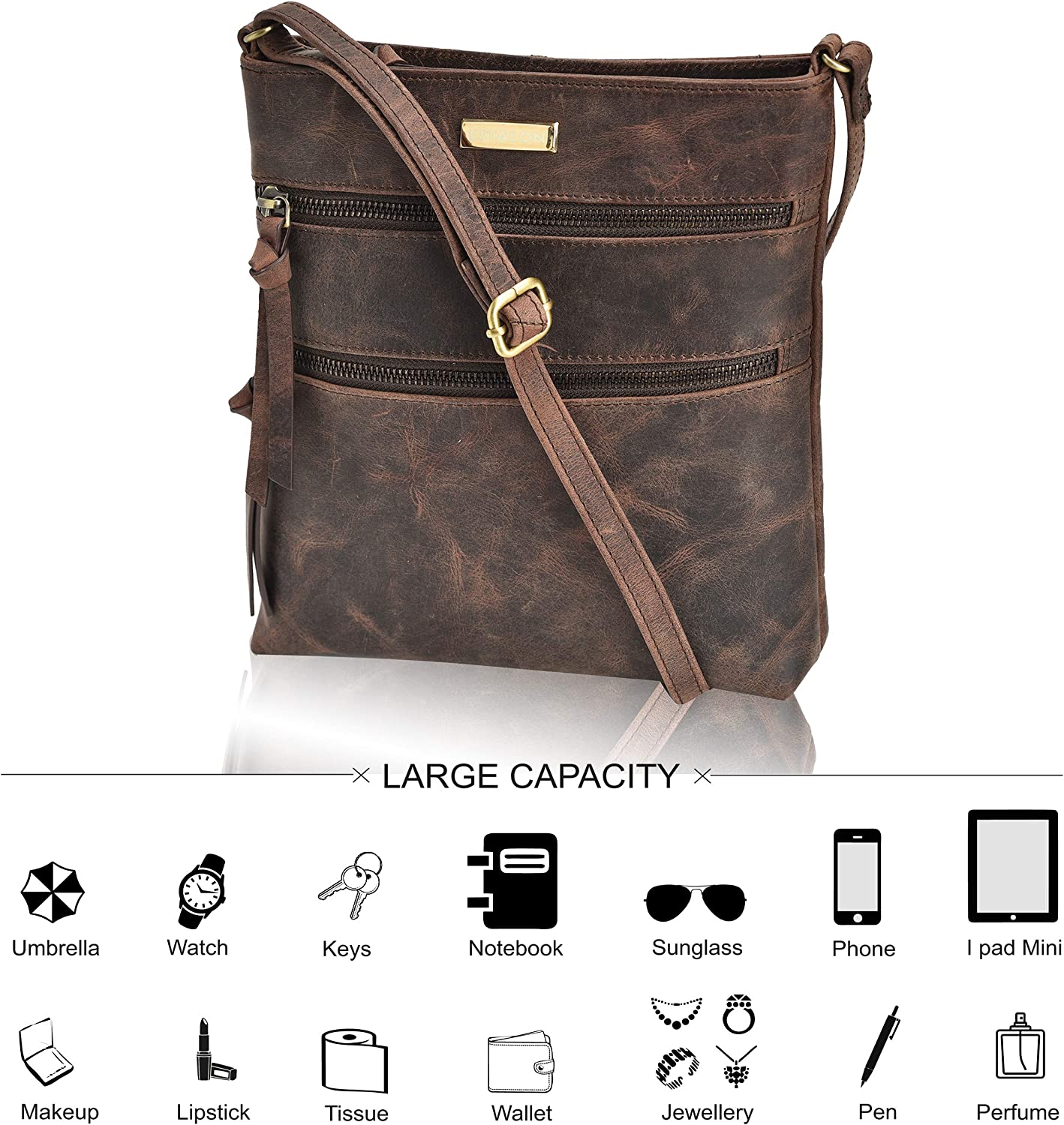PREMIUM QUALITY: Enjoy the perfect mix of durability, softness, and utility with our women’s crossbody leather bag. Made with real leather, each stitching on the satchel is sewed with special care by professional artisans to make it timeless, lightweight, and fashionable. Every bag goes through a series of quality checks to ensure the best quality is delivered to you. The casual-cool over the shoulder look of this luxury purse brings a stylish and vintage flair to all your looks.