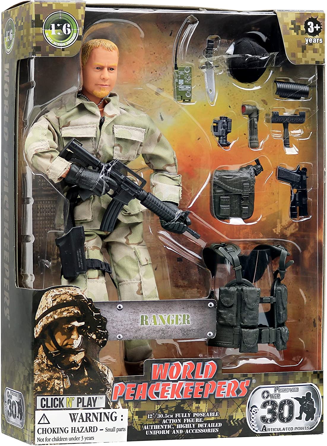 Click N' Play 12-Inch Action Figures Military Ranger Swat | Action Figure Stand, Army Action Figures, Toy Weapons | Toy Soldiers, World Peacekeepers, Army Guys, Elite Force | Soldier Toys for Boys