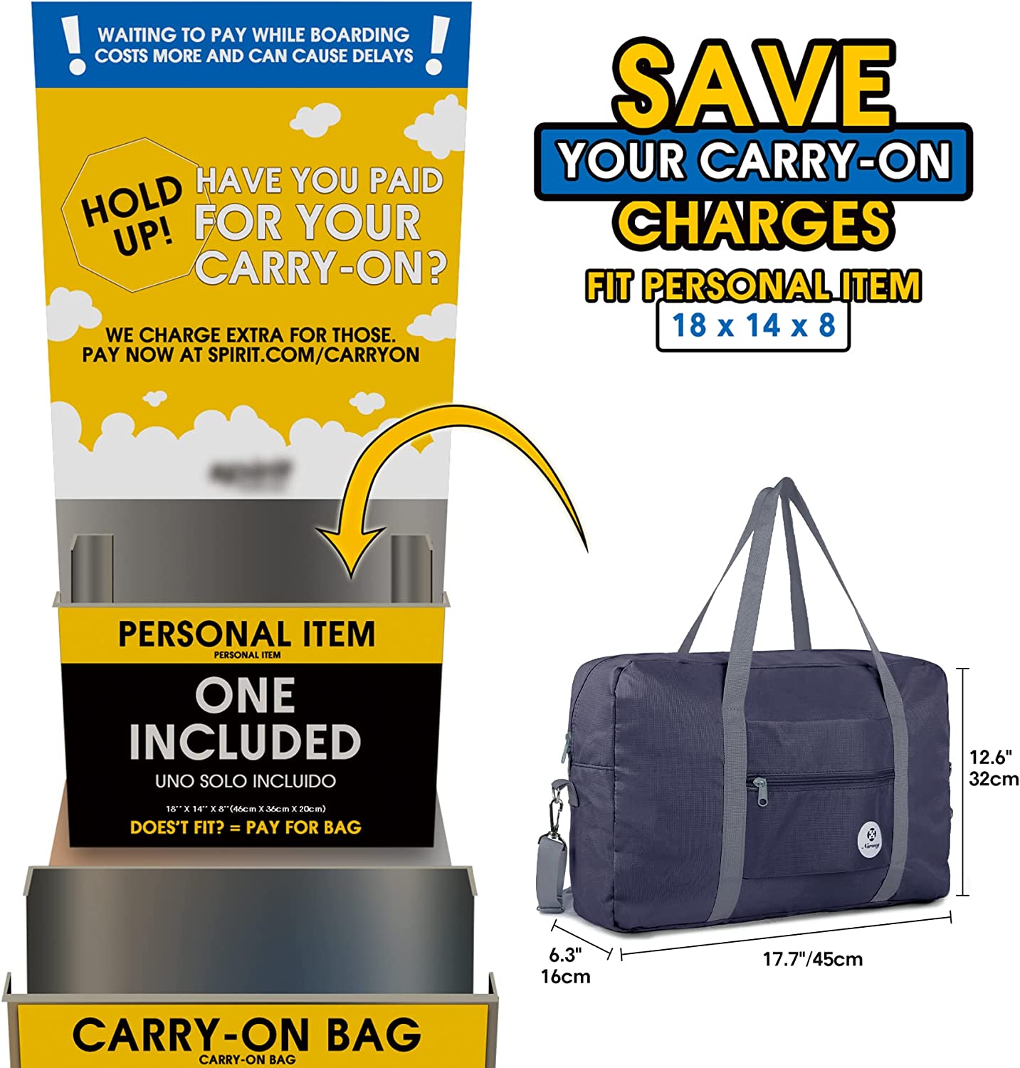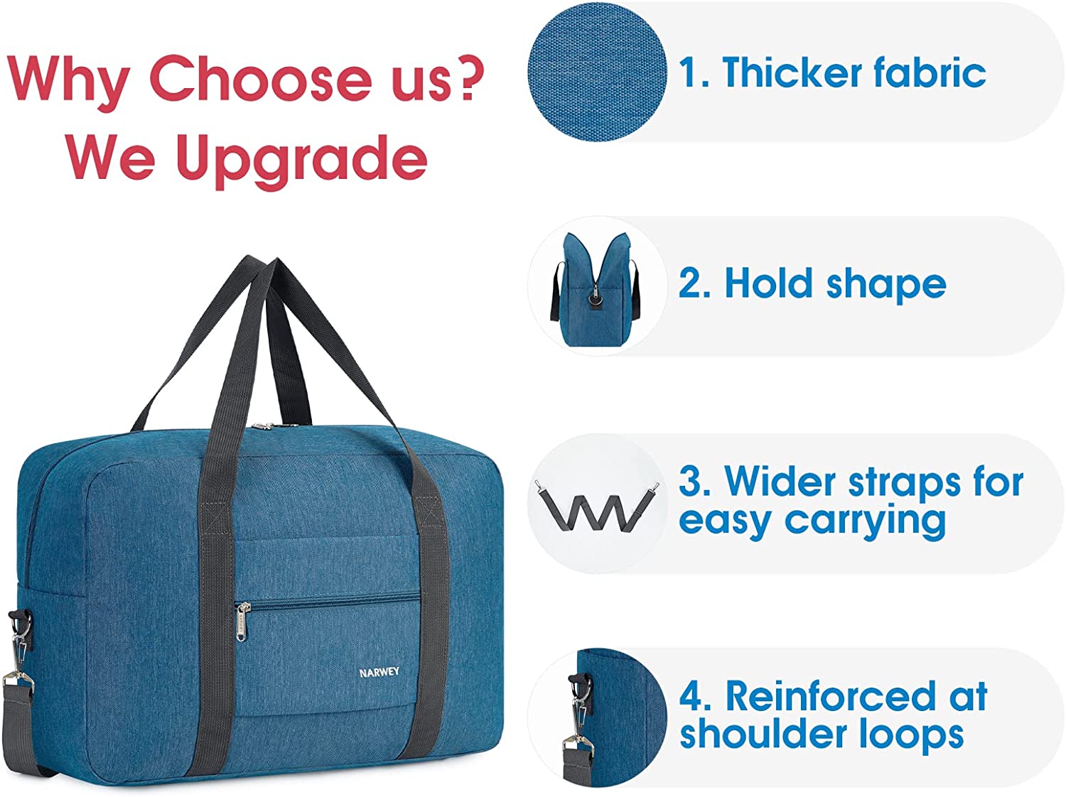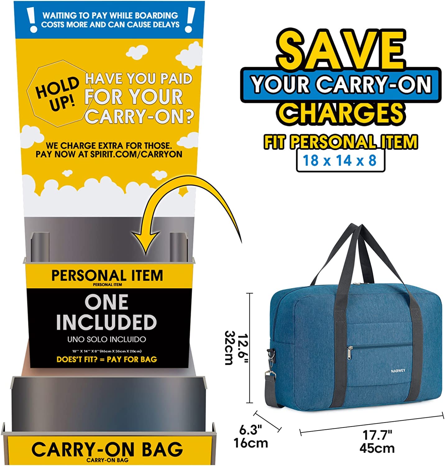 Narwey For Spirit Airlines Foldable Travel Duffel Bag Tote Carry on Luggage Sport Duffle Weekender Overnight for Women and Girls (3112 Dark Blue ( with Shoulder Strap))